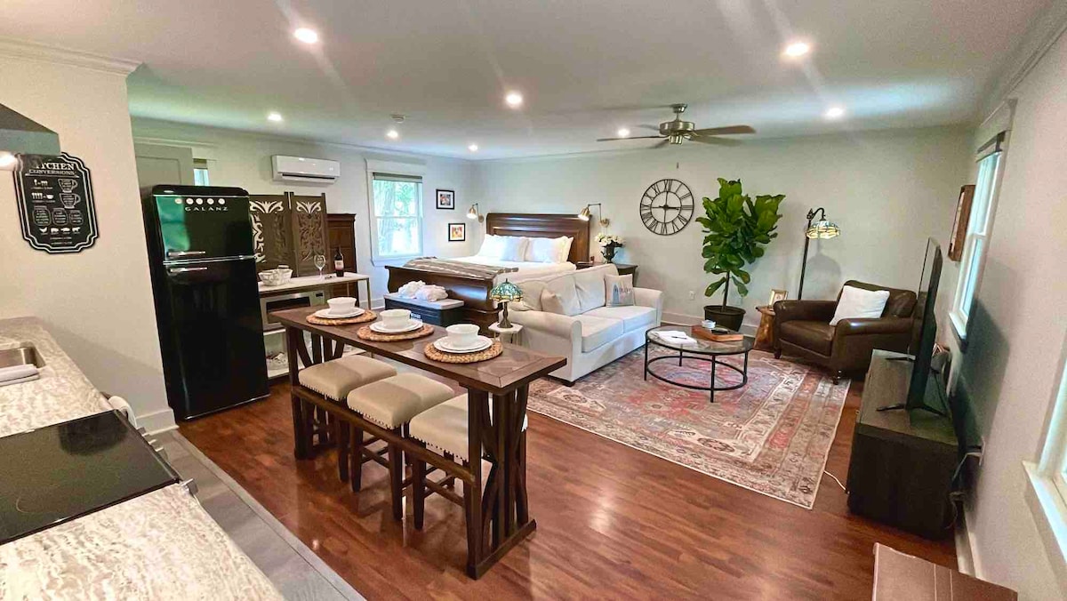 Appartement d'une chambre récemment rénové pouvant accueillir 4 personnes. L'appartement dispose de comptoirs en granit, d'appareils électroménagers neufs et d'un canapé-lit. Hardy Street Hideaway est situé dans le centre-ville de Hattiesburg, juste en face du campus USM, à distance de marche du District at Midtown et du Midtown Market. Un café gastronomique se trouve à côté, ainsi qu'un pressing pour ceux d'entre vous qui assistent à de belles réceptions ou qui prévoient de rester un certain temps !