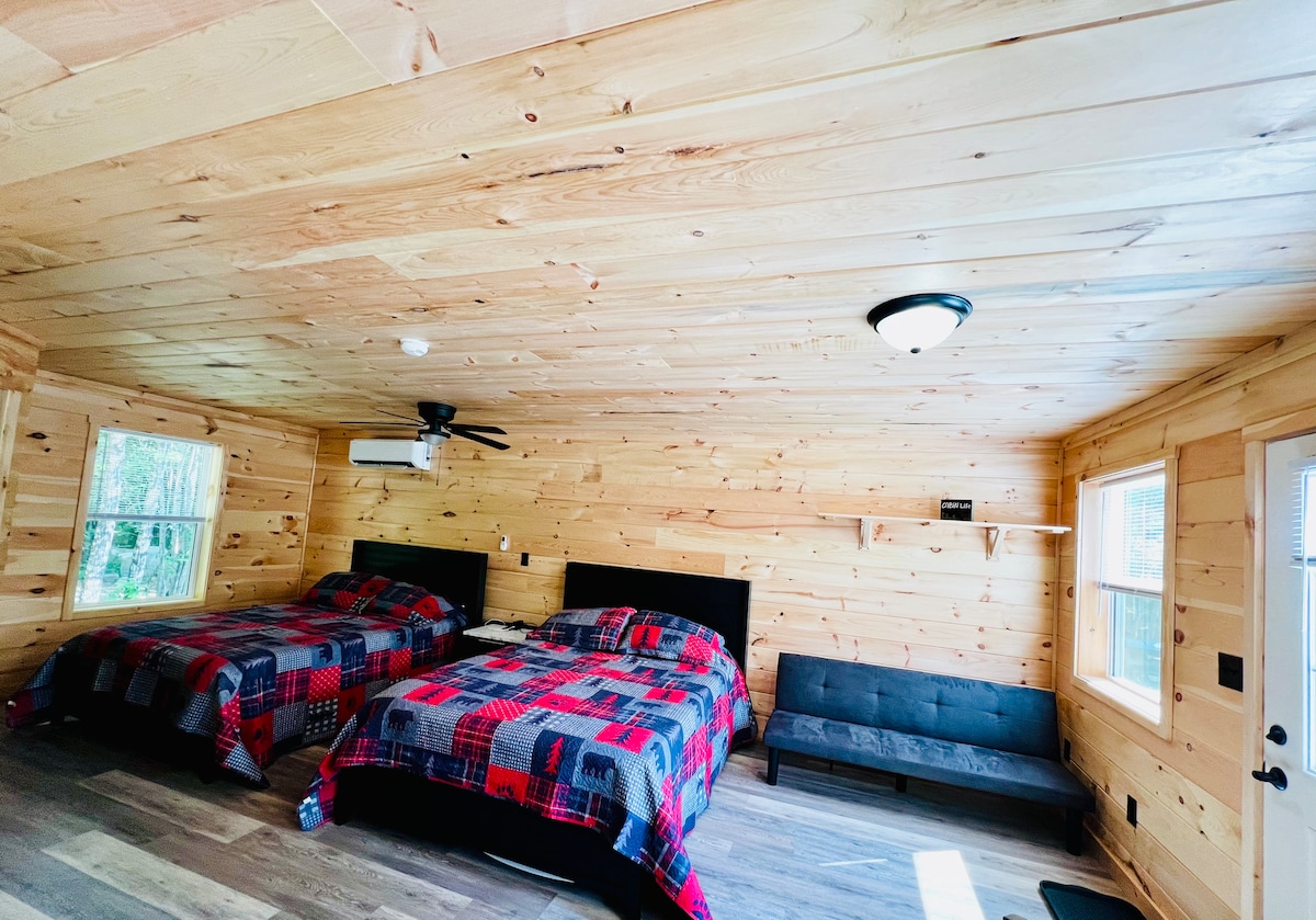 Évadez-vous dans une retraite sereine de 12 acres avec une cabane hors réseau alimentée par l'énergie solaire et un générateur. Profitez d'un kayak sur l'embouchure du ruisseau et pagayez jusqu'au lac Upper Macwahoc, ou explorez les sentiers accessibles depuis notre propriété avec votre VTT. Une allée en rotation permet d'amener facilement votre caravane. Situé à 45 minutes du parc d'État de Baxter et à 20 minutes de Katahdin Woods et Waters, c'est l'endroit idéal pour se détendre ou partir à l'aventure !
