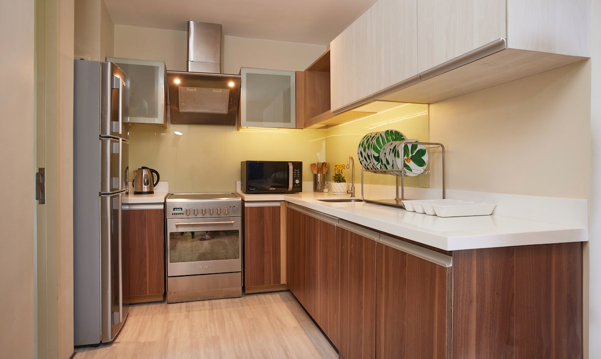 Bienvenue à Yugen Suites, votre retraite tranquille en bord de mer, où le design japonais minimaliste rencontre la beauté naturelle du mont Pico De Loro. Situé au 2e étage du bâtiment Carola B sur la magnifique côte de Hamilo, cet appartement récemment rénové est un studio de 47 m² avec cuisine et salle de bain attenantes conçues avec une esthétique propre et naturelle. — CAPACITÉ — Les règles de Pico limitent la capacité de la chambre à 6 personnes, ce qui inclut les enfants de 1 an et plus. Aucune exception.