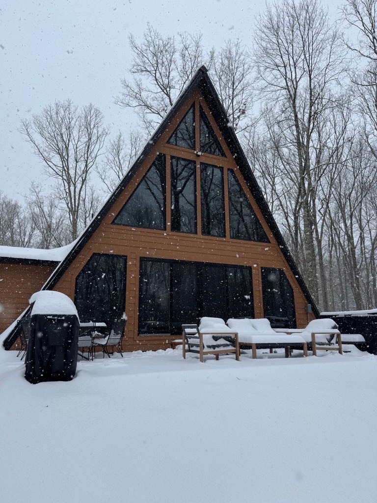 La saison de ski et de glissade sur tube est presque arrivée! Évadez-vous dans l '« Eclipse », une cabane moderne d'inspiration scandinave nichée sur 5 acres surplombant des bois sans fin. L'éclipse offre des équipements bien pensés tels qu'une cheminée à gaz frappante, une console d'arcade amusante, un disc golf, un laser tag et une charrette à pop-corn pour les soirées cinéma. Détendez-vous dans le jacuzzi sous les étoiles ou profitez du charme du cadre en A éclairé par LED. À « Eclipse », toutes les étoiles s'alignent pour un séjour vraiment magique.
