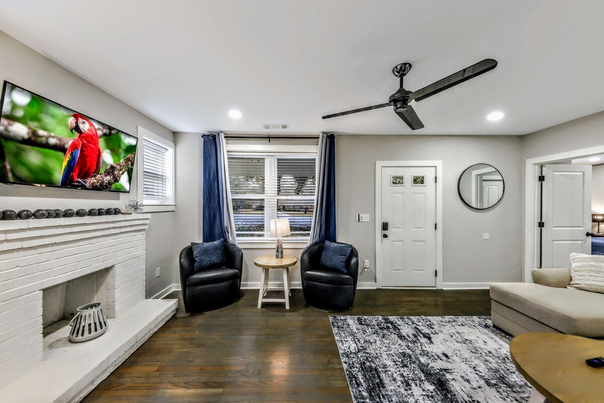 Le « Backyard Bungalow » est dans notre jardin. Situé dans le centre-ville historique de Carrollton, GA. 1100 pieds carrés, 2 chambres, 1 salle de bain et demie. À distance de marche de la place de la ville, de l'AMP et des restaurants. Parfait pour un hébergement d'entreprise ou temporaire. Tanner Med Center, Southwire et l'Université de l'Ouest de la Géorgie sont à proximité. Station de recharge pour véhicules électriques sur place. Grande cour privée, balançoire et foyer pour se détendre. Grand parking hors de la rue.
