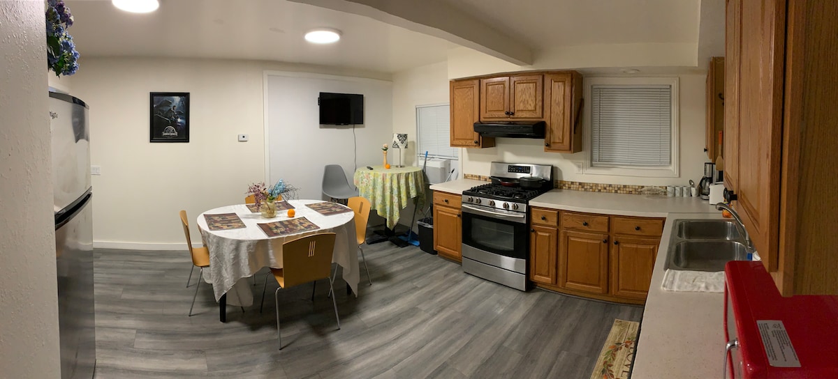 Come and relax in this spacious and separate guest suite with a private entrance. Use the soaking tub to rejuvenate after a long day or enjoy coffee or tea while taking in the nice California weather in the backyard seating area. If you enjoy cooking you can take advantage of the kitchen with a full sized refrigerator, stove, microwave and all the basics you will need to prepare meals. If you prefer take out or to eat out there are lots of restaurants nearby.