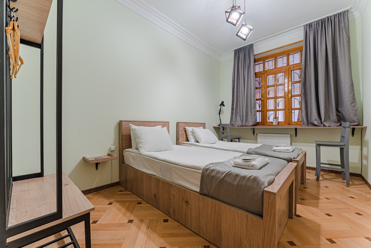 6 appartements uniques sont situés dans le centre de la vieille ville, où vous pourrez ressentir toutes les couleurs du vieux Tbilissi. 6 appartements uniques sont situés à 200 mètres de l'avenue Shota Rustaveli. Le théâtre d'opéra et de ballet de Tbilissi, la place de la Liberté, La cathédrale Saint-Georges, l'église Metekhi, la station de téléphérique du funiculaire sont accessibles à pied.