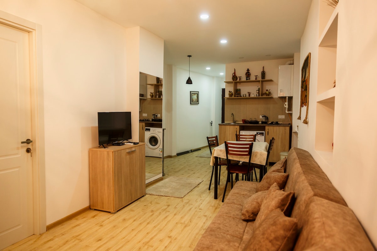 Studio lumineux et confortable au cœur du prestigieux quartier de Vake à Tbilissi, un endroit calme avec une entrée arrière privée au rez-de-chaussée. Équipé d'une connexion Wi-Fi rapide, d'un lave-linge, d'un four à micro-ondes, d'un climatiseur, d'un sèche-cheveux et d'un lit king-size avec un nouveau matelas confortable. Les supermarchés ouverts 24h/24 et 7j/7 abondent, ainsi que les cafés et les boulangeries, les pharmacies, les salles de sport et une poignée de magasins de mode sur l'avenue centrale Chavchavadze à proximité. Beaux parcs et téléphérique du lac Tortue à quelques minutes à pied.