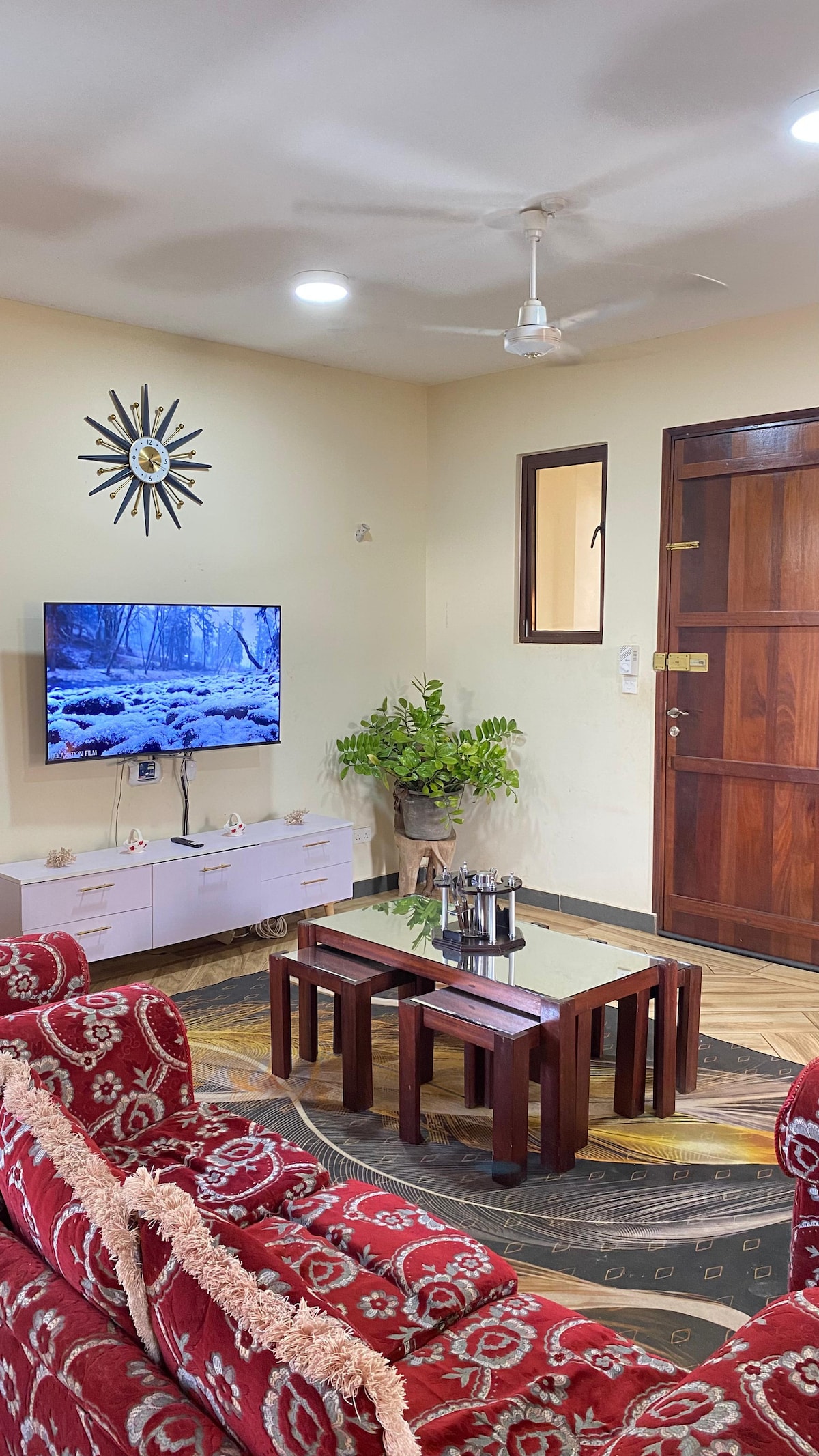 Notre logement de 2 chambres entièrement meublé offre le mélange parfait de confort, de commodité et de charme en bord de mer • Salon spacieux avec un décor élégant • Cuisine moderne entièrement équipée • 2 chambres confortables avec beaucoup d'espace de rangement • Balcon privé avec brise fraîche de l'océan • Wi-Fi rapide et téléviseur intelligent • Air climatisée • Stationnement sécurisé et sécurité 24 h/24, 7 j/7 • À quelques minutes de Nyali Beach et Mombasa Beach • Proche du centre-ville et du centre Nyali • Près des meilleurs restaurants, cafés et vie nocturne • Accès facile au parc Haller et aux entreprises