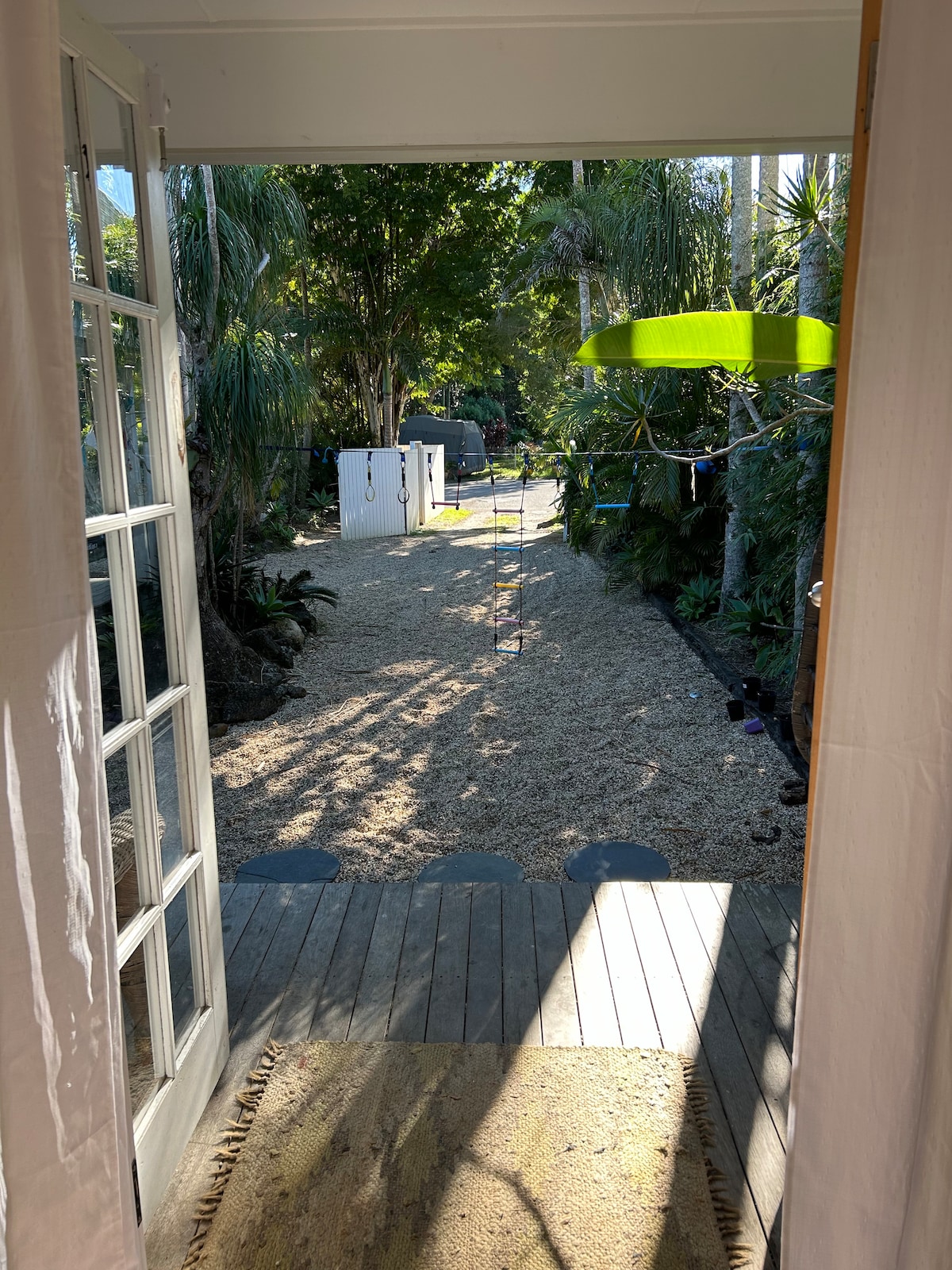Dès que vous franchissez la porte, vous ressentez l'ambiance détendue de Byron ! Elle est à 2 min à pied du « garde-manger » de Baz & Shaz, à 7 min du village de Suffolk et à 15 min de Tallow Beach. Le centre de Byron est à 10 min en voiture. La suite dispose d'un lit double king-size, d'une salle de bains privative, d'une entrée privée, d'une véranda privée et d'une cour avec table et chaises, ainsi que d'un bureau dans un coin. Il y a un placard de cuisine avec un micro-ondes, un réfrigérateur, un grille-pain, une bouilloire et de la vaisselle adaptée pour les petits déjeuners et les plats à emporter.