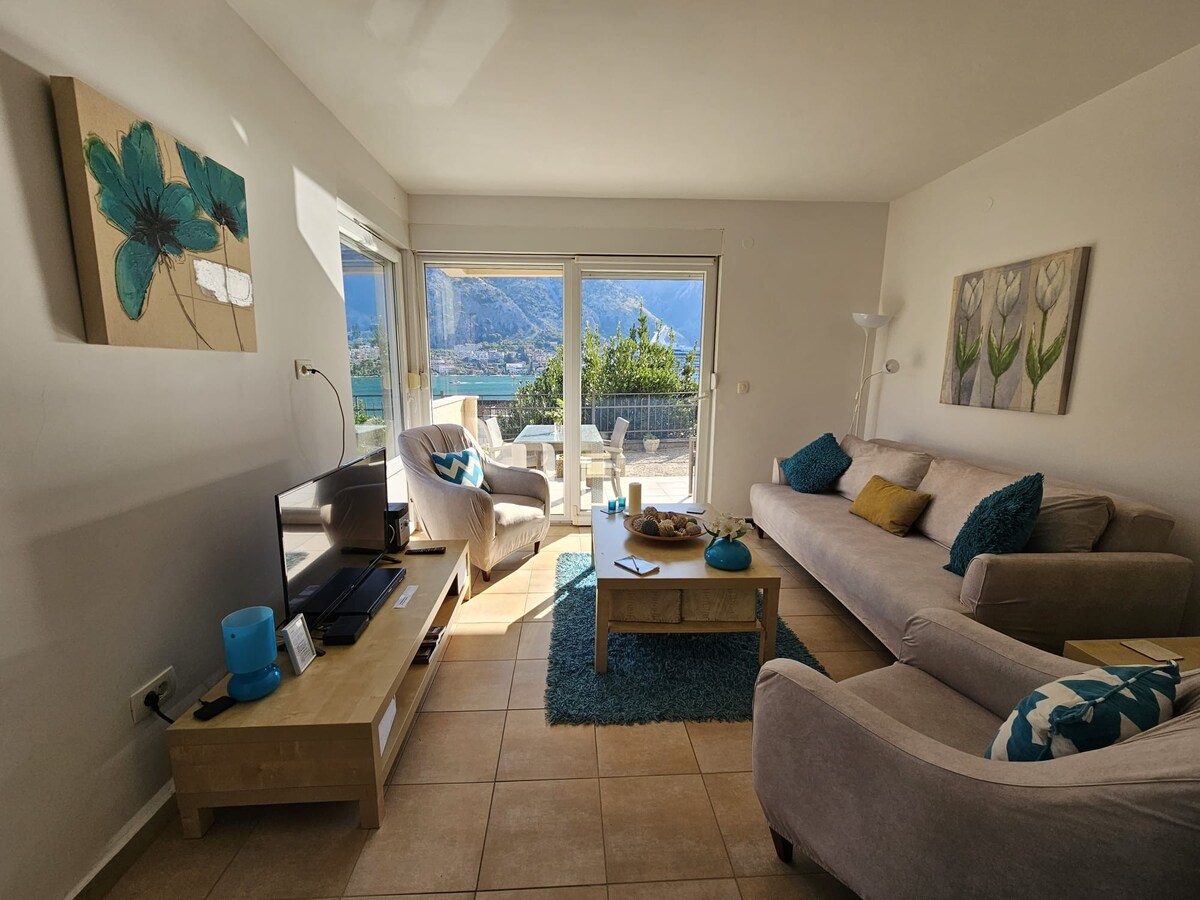 Appartement est de 55 m2, situé à 1,7 m de la vieille ville protégée par l'Unesco Kotor. Appartement est situé dans un quartier calme de Kotor, Muo. Il est à 30 m de la mer. La terrasse offre une vue unique sur la vieille ville et tout l'aquatorium Kotor. Il est confortable, fonctionnel et adapté pour les vacances et les longs séjours, aussi.