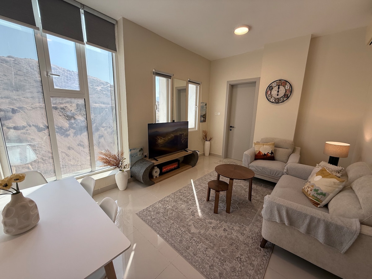 Wake up to breathtaking mountain views in a stylish, modern space inspired by Oman’s natural beauty. This cozy retreat blends sleek design with warm touches, creating the perfect balance between comfort and charm. Located in a peaceful area at the centre of the city and near all the malls , restaurants and relaxing places , it’s ideal for relaxing mornings, sunset views, and unforgettable stays.