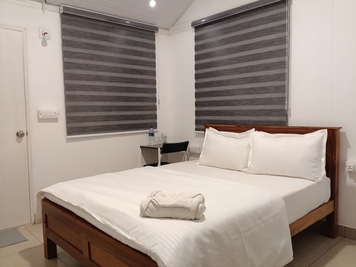 Bienvenue dans notre chalet paisible d'une chambre, situé au bord de notre plantation de café. Parfait pour les couples ou les petites familles, cette retraite isolée à 200 m de la ferme du garde forestier assure l'intimité. Il dispose d'une chambre moderne avec salle de bains privative ainsi que d'un balcon privé avec vue sur l'étang serein. Plongez dans la tranquillité, profitez d'un café fait maison et découvrez la vie des plantations lors de promenades tranquilles. PS : L'étang naturel que vous voyez devant le chalet n'est pas adapté pour la baignade. Il est dangereux d'entrer en raison de la boue et de la profondeur