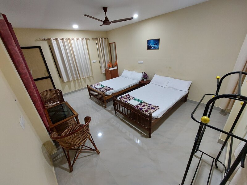 We are a Nagercoil based family, residing in Nagercoil for multiple generations since 1934. We are offering our 4 BHK, 2 bathroom, non-AC villa. ‘Home away from home’ is located in a leafy, upscale neighborhood situated 5 mins (walking) from the district collector’s office in Nagercoil. 2.5 K.M. from Bus station and 2.75 K.M from railway station. Entire villa is provided to one family/ group at a time. It accommodates 4 (minimum) to 15 (max) guests. You'll feel at your own Papa's house.