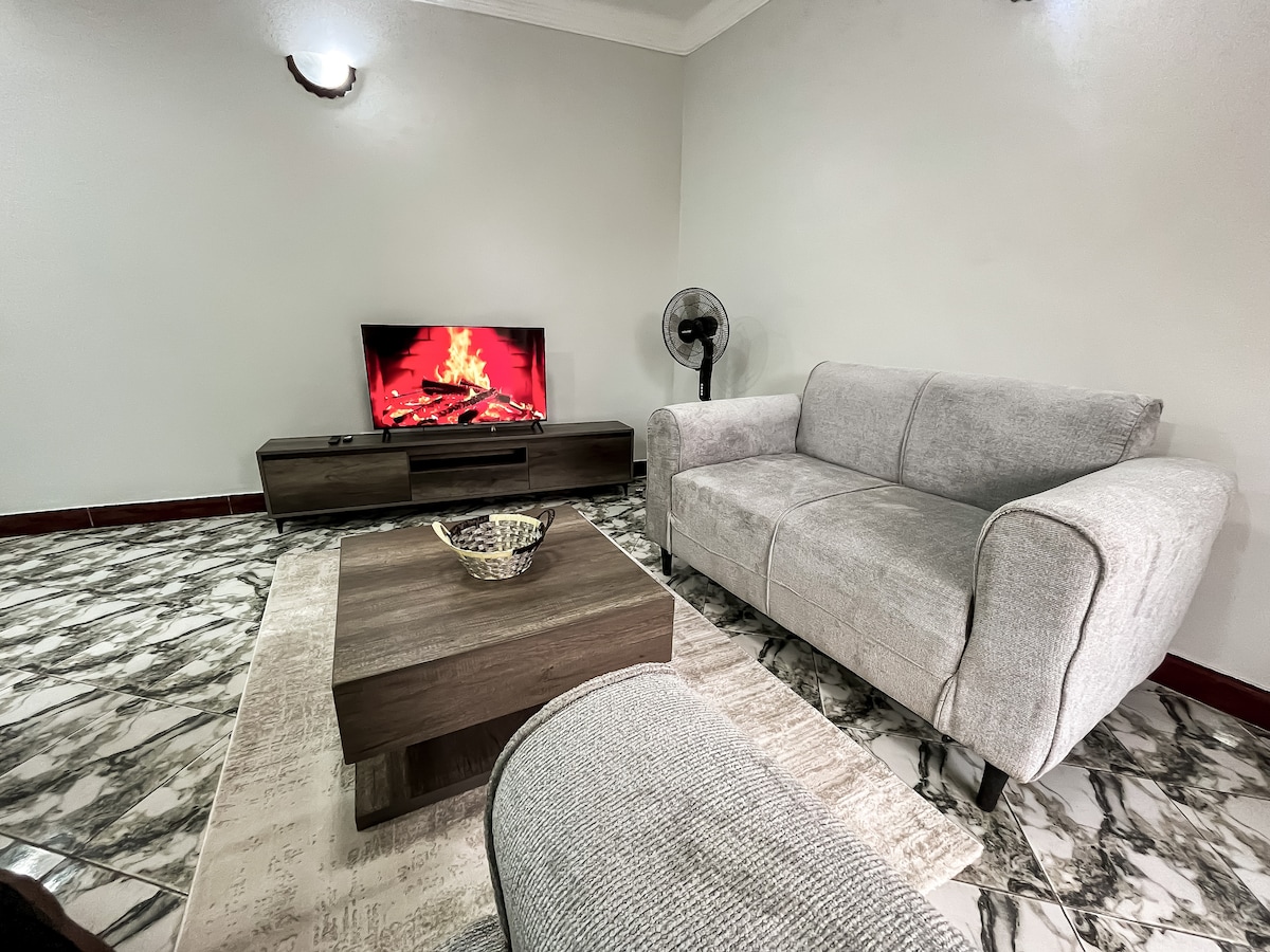 Vous séjournerez dans un beau quartier de Buziga. Elle est entourée par Munyonyo, Mawanga, Gaba, Muyenga, Bunga, etc. L'appartement est proche de nombreux restaurants, salles de sport, banques locales, plages, supermarchés. À seulement 30 minutes de l'aéroport international d'Entebbe. Nous avons : — Wi-Fi. - Télévision intelligente —2 chambres, 2 lits king size —2 toilettes, 1 chauffe-eau - Cuisinière avec four - Réfrigérateur - Bouilloire - Four à micro-ondes - Machine à laver de 7 kg —Fan - Fer à repasser à vapeur - Sèche-cheveux ; - Parking gratuit — Miroir de courtoisie, etc.