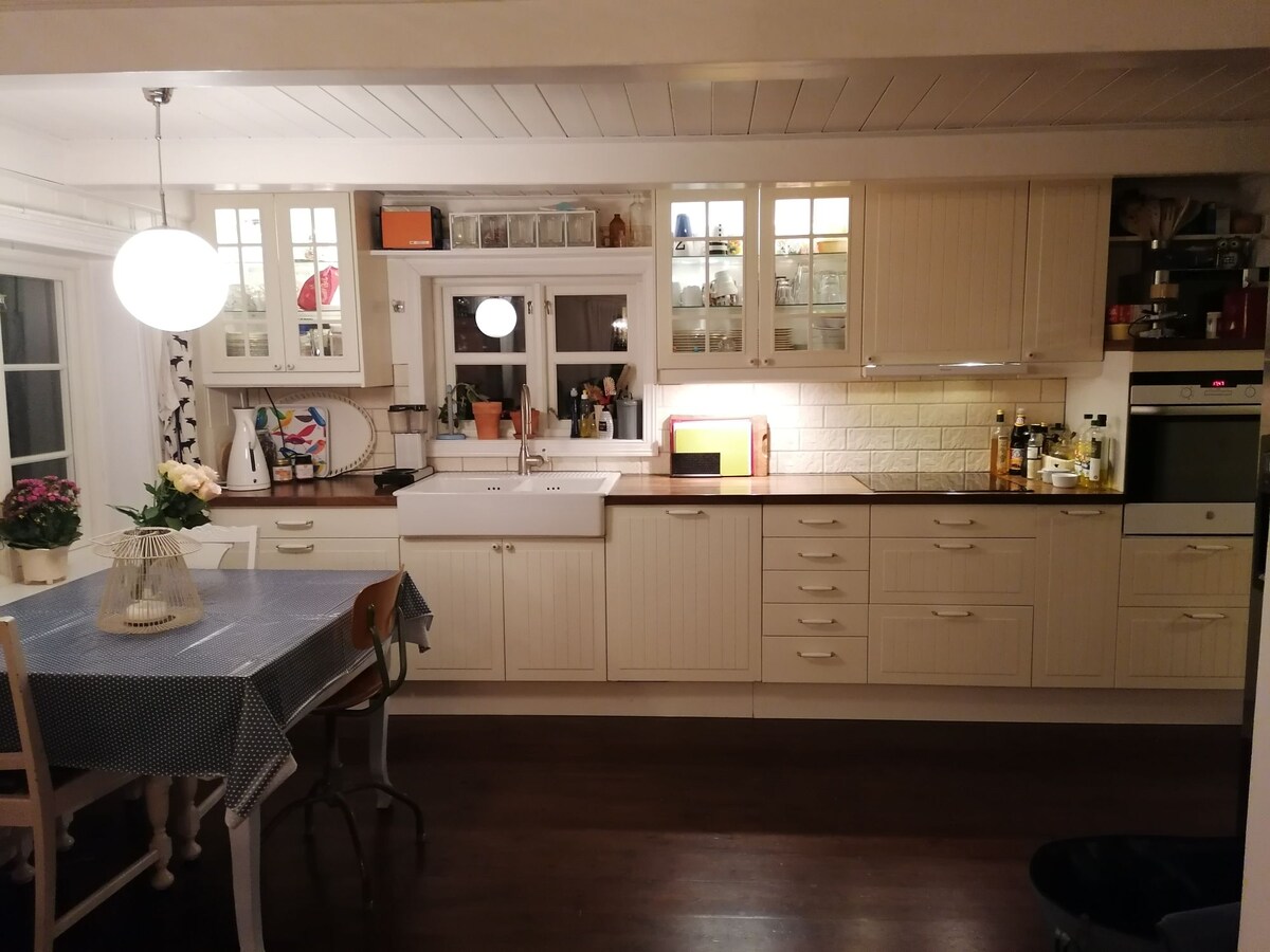 Appartement confortable et bien entretenu dans une seule habitation, avec vue sur la mer et patio privé. Bel emplacement au cœur d'un terrain de construction calme. Bien équipé avec TV, Wi-Fi, la plupart des équipements de cuisine et lave-linge. Nous sommes arrivés jusqu'à 17 h en raison de la situation professionnelle, mais vous pouvez demander si vous souhaitez une arrivée anticipée. À 300 m du magasin et du bus. Le bus va environ toutes les 30 minutes à Arendal/Grimstad/Kristiansand À 2 km de la belle Buøya avec plusieurs superbes plages. Entrée et couloir partagés, propre porte verrouillable.