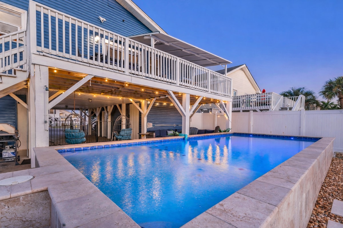 À moins de 1 mile de Surfside Beach et du nouveau quai - 2 lits, 1 grande salle de bain avec double lavabo, bain à remous surdimensionné, douche séparée, grand salon avec canapé-lit, coin repas et petit déjeuner, buanderie, véranda avec jacuzzi, grand patio avant et cour clôturée. **Veuillez ne pas réserver cette maison si vous avez tant de personnes qui viennent, elles ne peuvent pas partager le bain principal situé dans la suite principale. ***Il y a un propriétaire d'appartement séparé qui peut rester avec l'entrée arrière, donc la cour clôturée est le seul espace potentiellement partagé.