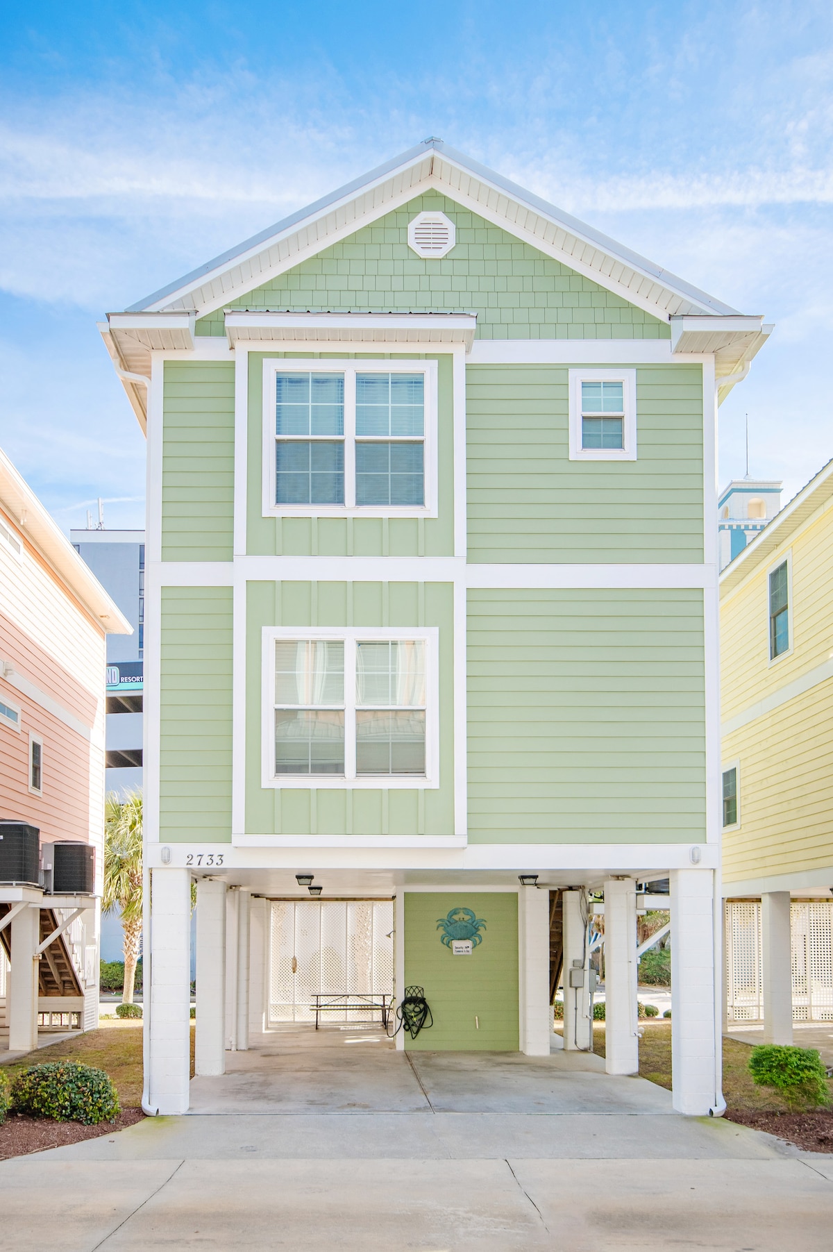 Cette belle maison de plage est idéalement située et à seulement 100 mètres de la plage (vous pouvez voir l'océan depuis le deuxième étage). 4 chambres, 3,5 salles de bain. Grande cuisine ouverte avec bar à petit-déjeuner et balcon. À quelques minutes de l'aéroport, des parcours de golf et de nombreuses autres attractions populaires. Parking sous la maison pour 3 véhicules, douche extérieure et rangements. Entrée facile de la serrure à digicode pour toutes les portes. Piscine dans l'espace commun. L'âge requis est de 25 ans ou plus.