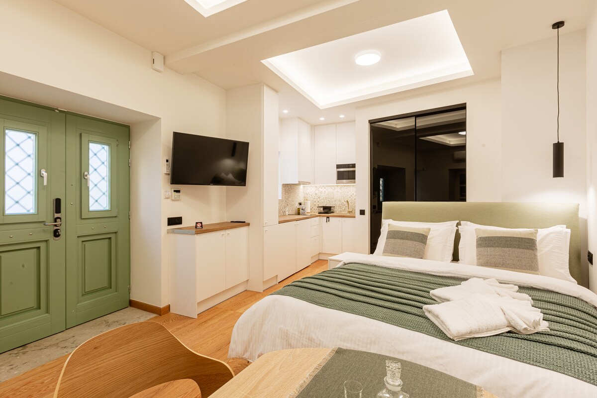 Nouveaux appartements pour 2 personnes dans la rue piétonne de la vieille ville de Nauplie. Entièrement équipé avec cuisine, balcon et fenêtre pour une ventilation saine. Il dispose de la climatisation, d'un ventilateur de plafond, d'une cuisine, d'une salle de bain, d'une connexion WiFi. Canapé-lit pour 1 personne supplémentaire. Mesures COVID-19 : les chambres sont d'abord nettoyées puis désinfectées en mettant l'accent sur les points de contact fréquents (poignées, rampes, télécommandes, interrupteurs, poignées, etc.). L'établissement est certifié par le label « Health First ».