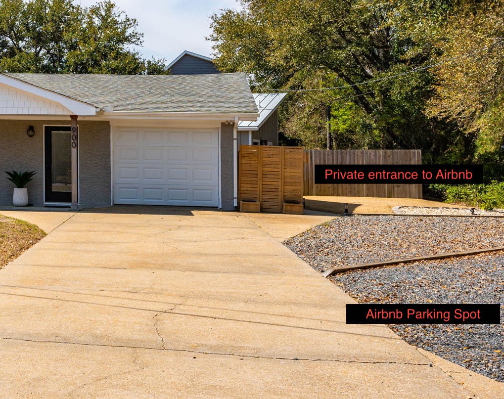 Appartement privé spacieux au rez-de-chaussée donnant sur une cour arrière clôturée. Il y a un salon avec une cheminée à gaz. Joli coin repas et coin kitchenette avec réfrigérateur complet et machine à glaçons. La cuisine dispose d'un bar humide, d'un Keurig et d'un micro-ondes. Il se trouve à quelques pas de la plage par un sentier paysager privé. À deux pas des restaurants, Jockey 's Ridge, Dowdy Park, NH Fishing Pier. La maison principale n'est ni louée ni occupée, vous aurez donc une intimité totale et l'espace extérieur rien que pour vous. Piscine fermée