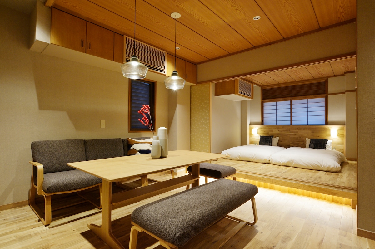 Située dans le quartier Joto d'Osaka, cette maison historique de 1909 est une survivante rare de la Seconde Guerre mondiale. Rénové en 2015 par une designer de renom, il s'étend sur 150 € , mêlant charme historique et luxe moderne dans une retraite tranquille dans le centre-ville. Son design élégant harmonise le passé et le présent, offrant une immersion culturelle et un confort spacieux. Avec deux salles de bains, des toilettes séparées, des lavabos et une grande baignoire, elle assure l'intimité et la propreté des groupes. Découvrez la culture, l'histoire et le confort que votre séjour parfait à Osaka vous attend.