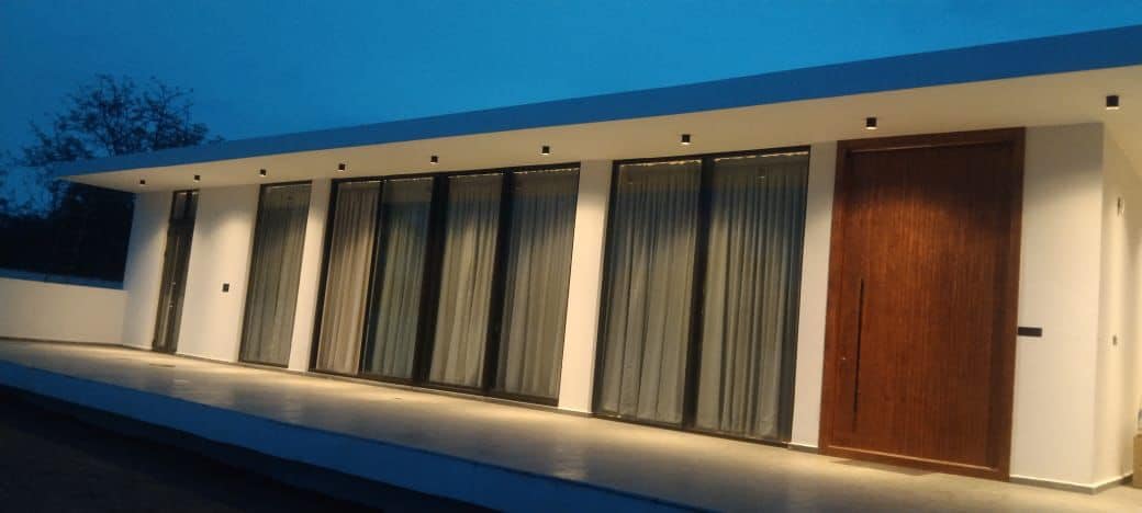 peaceful night stay with Joyful pool, Hall with attached kitchen and Bedrooms with attached washrooms and open garden with a stage .