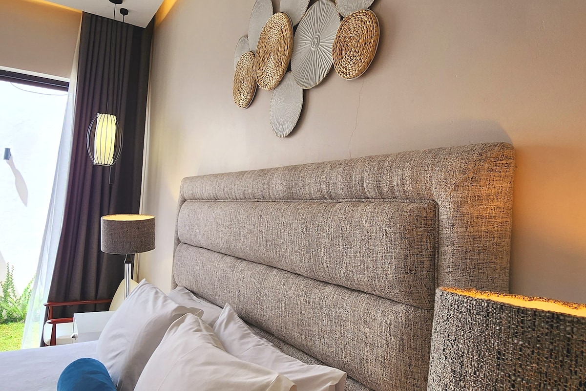 Il s'agit d'un fabuleux logement de deux chambres avec deux chambres identiques avec salle de bains privative, chacune avec un lit King Size et un jardin intérieur privé. Salon ouvert, salle à manger et cuisine entièrement équipée donnant sur une cour intime. Espace tranquille paisible, meublé avec goût et magnifiquement conçu à moins de 10 minutes du quartier d'affaires avec CONNEXION WI-FI gratuite et systèmes de secours en électricité/eau. Avec des prix raisonnables, cette option offre le meilleur rapport qualité-prix de la ville.
