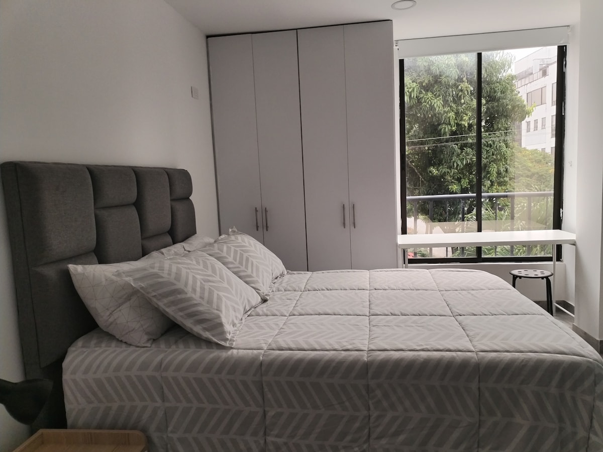 Profitez d'un séjour confortable dans ce studio magnifique, confortable et moderne, situé dans un quartier résidentiel calme et sûr au sud de Cali. Son design sophistiqué et confortable offre le cadre idéal pour passer un agréable séjour. Nous sommes à proximité des centres commerciaux, des supermarchés, des restaurants, des bars, des cliniques et des universités, avec un accès facile aux transports en commun et à quelques minutes de la 5e rue. Réservez dès maintenant et profitez d'une expérience unique à Cali !