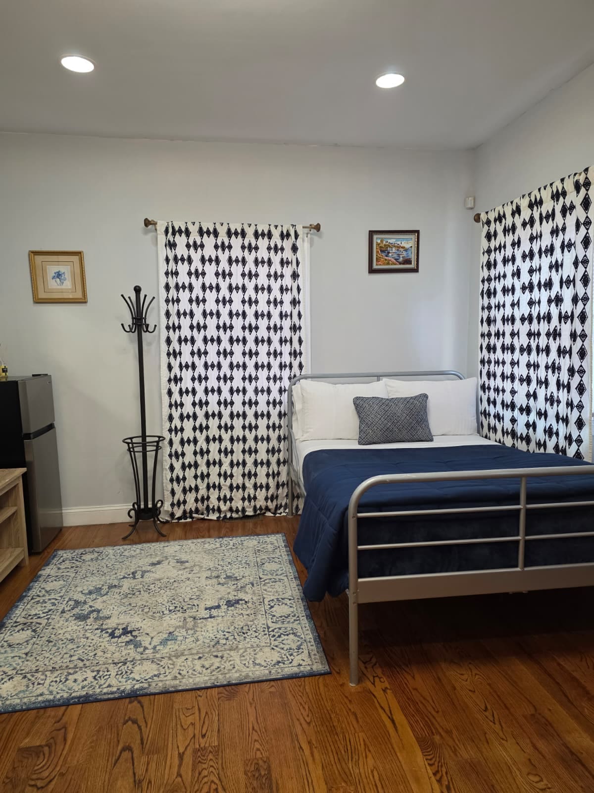 Son confort vous fera sentir comme chez vous dès que vous entrerez. Cette jolie suite au rez-de-chaussée de 280 pieds carrés est entièrement meublée et joliment décorée - elle est livrée avec tout ce que vous pouvez imaginer. Il se compose d'une chambre, d'une salle de bain et d'un coin cuisine/salle à manger/salon. Taille des chambres : Chambre : 10 pi x 7 1/2 pi Cuisine LR DR : 19 pi x 10 pi Bain : 40 po x 80 po Étant donné la proximité de tout, c'est parfait pour les voyageurs qui prévoient de se rendre en ville en train ou de se déplacer en Uber.