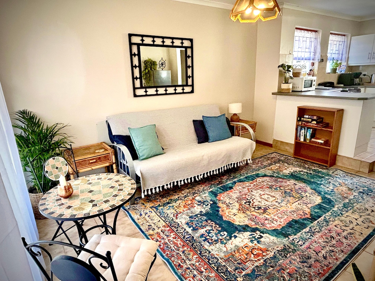 Bienvenue! Votre deuxième maison! Situé au centre de Mossel Bay, notre appartement spacieux offre une vue imprenable sur la mer et les montagnes, parfait pour les familles de quatre personnes (2 adultes, 2 enfants). Profitez d'une grande chambre avec un lit queen size, d'un salon confortable avec un canapé-lit double et d'une cuisine entièrement équipée. Détendez-vous au bord de la piscine et profitez des installations de braai intérieures et extérieures. Avec le WiFi illimité, Netflix et DSTV, tout ce dont vous avez besoin pour un séjour parfait. À seulement 2,5 km de la plage et des commerces, c'est l'escapade idéale!