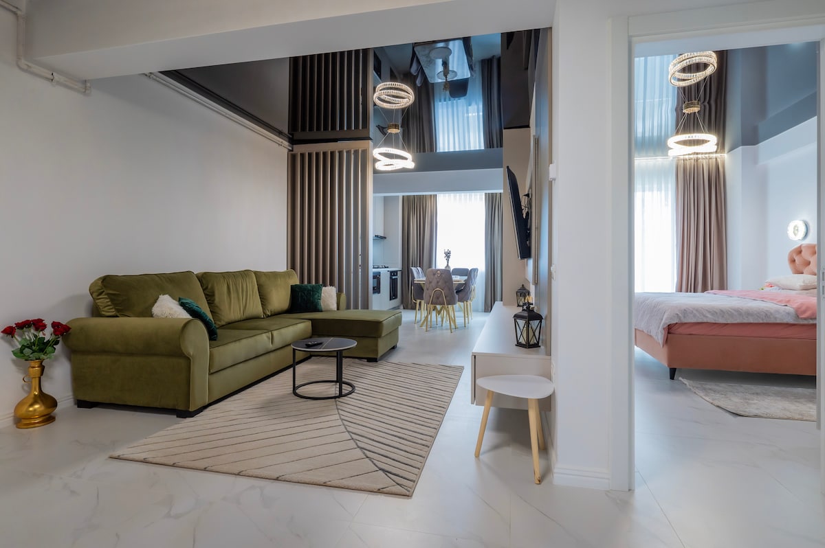 Réveillez-vous avec la brise marine, à seulement 50 m de la plage! Salon lumineux et spacieux avec un coin de travail confortable et une connexion Internet rapide et stable (300 Mbps). Pour les séjours longue durée, profitez du nettoyage et du changement de linge de maison/serviettes en option – 200 lei/session pour garder tout frais. Cuisine entièrement équipée, chambre confortable et balcon avec vue sur la mer : votre logement idéal au bord de la mer.