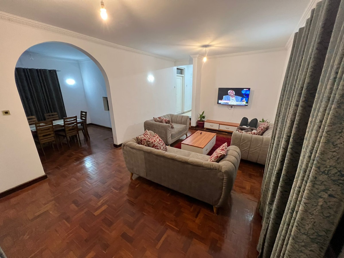 Bienvenue dans notre élégant BnB at Nati Apartment, votre évasion parfaite ! Meublé avec soin avec un décor moderne et un lit printanier super confortable pour des nuits reposantes. Profitez d'une connexion Wi-Fi Safaricom rapide, détendez-vous dans un espace paisible avec une vue magnifique et détendez-vous en sachant que vous n'êtes qu'à quelques minutes de l'aéroport et de la route principale. Que vous soyez là pour le travail ou les loisirs, notre emplacement est incroyablement accessible et idéal pour un séjour en douceur et sans stress.