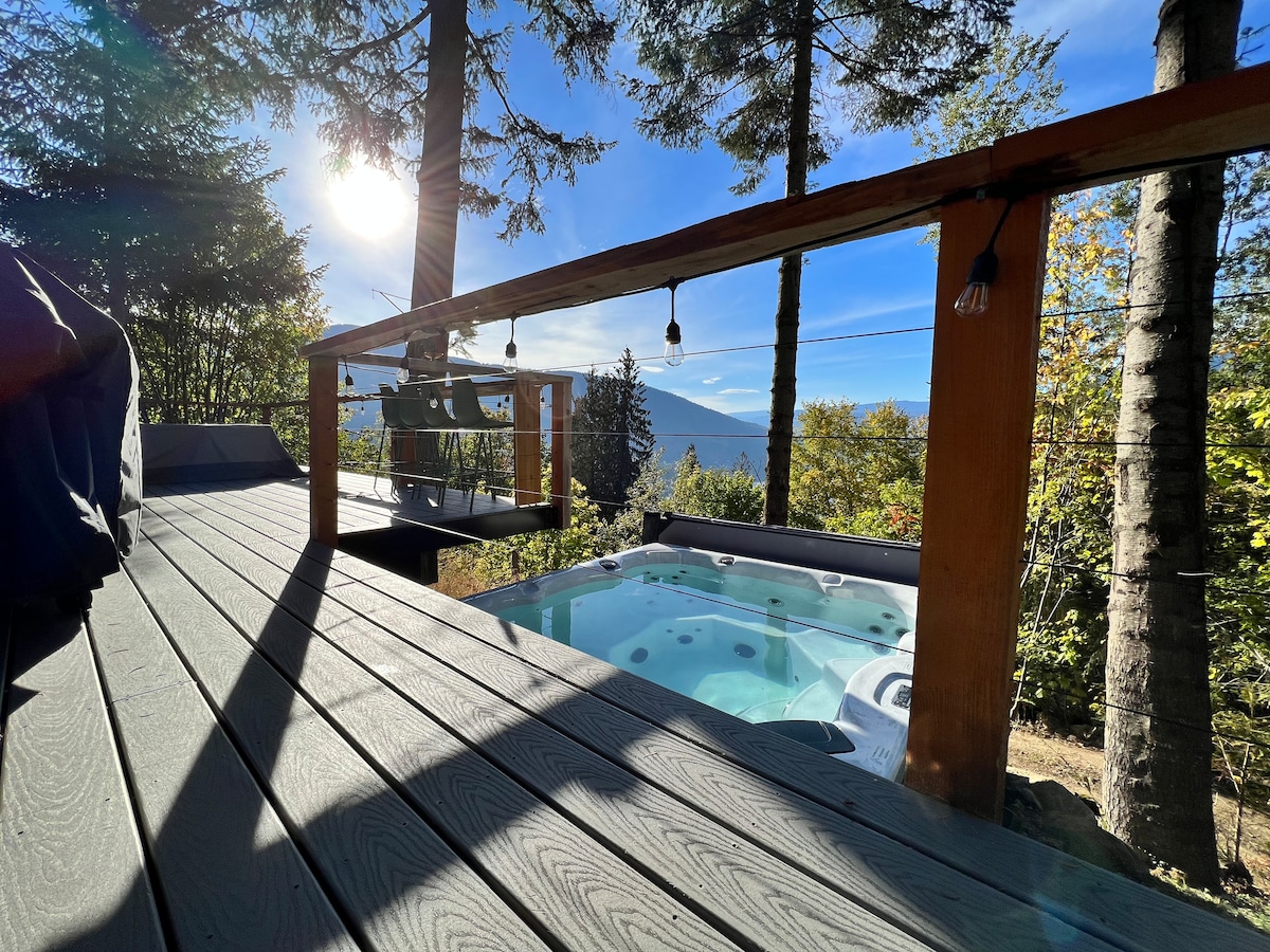 ***Désolé les amis, nous ne pouvons pas héberger vos chiens*** Cabane moderne, idéale pour les amoureux de la nature, les skieurs et les snowboarders, les motoneigistes, les vétomontagnards, les randonneurs ou ceux qui explorent Nelson à proximité. La terrasse ensoleillée donne sur un magnifique pin ponderosa et se trouve à quelques pas d'un sentier de découverte de la faune. Située sur sept hectares paisibles, la propriété est partagée avec des élans, des cerfs, des lapins, deux corbeaux résidents et des dindons sauvages occasionnels, offrant une expérience de montagne vraiment immersive.