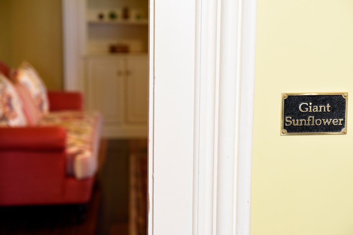 Notre salle de tournesol géante est la plus grande chambre située au 2e étage. Il donne sur l'entrée officielle initiale du logement. Un grand érable à sucre de plus de 150 ans vous accueille en regardant vers le nord. Cette chambre lumineuse offre un canapé confortable, une chaise de lecture et un lit king size avec de luxueux draps en coton biologique. La salle de bain privée avec une grande baignoire et douche juste à l'extérieur de votre chambre. Des peignoirs et des pantoufles en coton vous attendent ainsi qu'un délicieux petit-déjeuner continental lorsque vous décidez de vous lever et de briller.