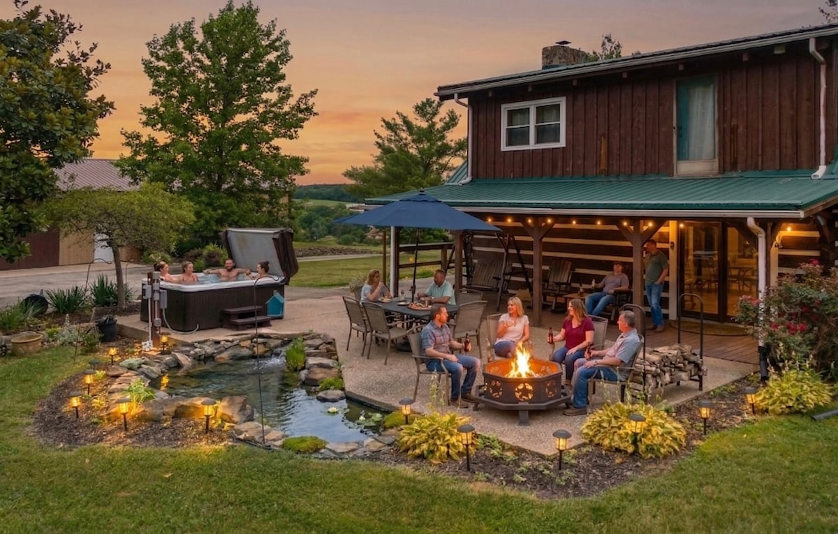 🏡 Bourbon Trail Hideaway – Une cabane en rondins 5BR, 3,5BA spacieuse sur 6 acres privés, à seulement 9 minutes de Jim Beam ! 🍂 Alliant charme rustique et confort moderne, cette retraite dispose d'un salon clandestin FLAMBANT NEUF, d'un jacuzzi, d'un brasero, d'une terrasse enveloppante, de jeux d'arcade et d'une cuisine bien approvisionnée. Profitez de couchers de soleil à couper le souffle, d'une connexion Wi-Fi rapide, de sièges moelleux, d'une télévision connectée et d'une ambiance confortable, ainsi que de lits luxueux, d'une baignoire spa et de beaucoup d'espace pour se détendre ou se divertir. Parfait pour les groupes, les couples et les amateurs de bourbon ! 🥃✨