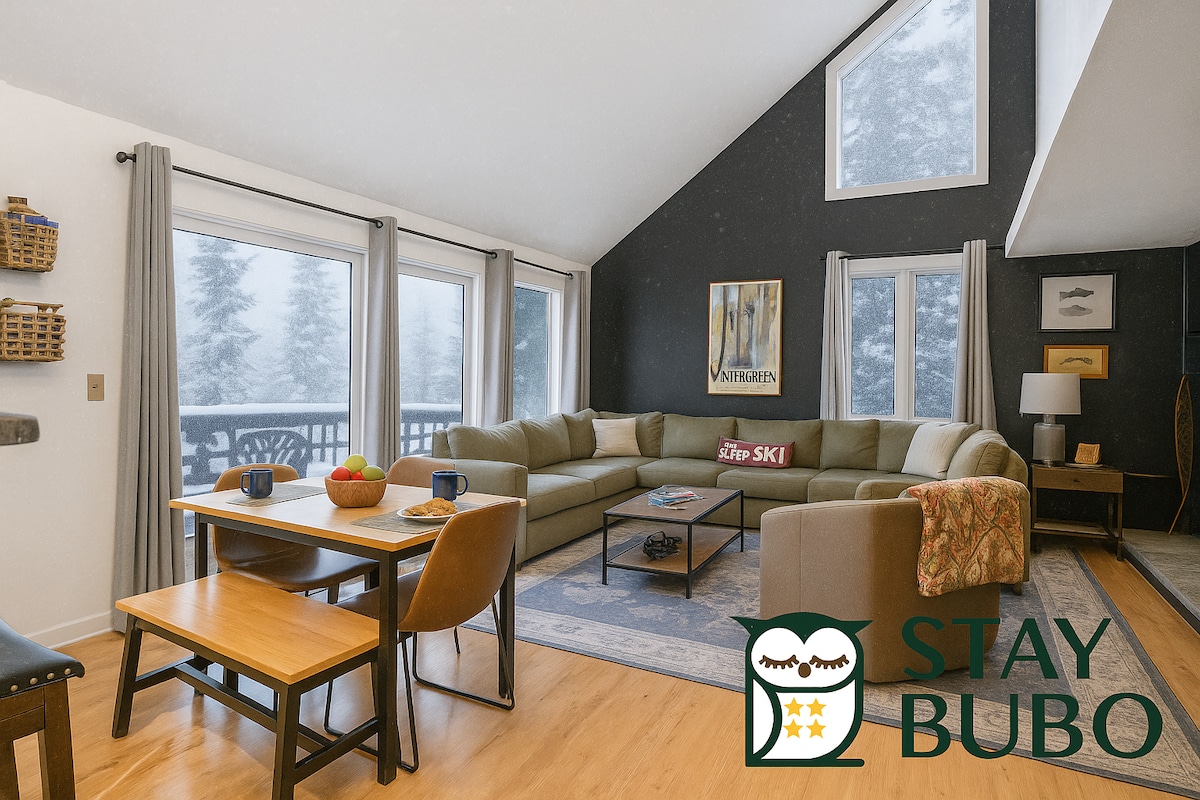 Idéalement situé à distance de marche du spa et de la piste de ski des Highlands se trouve notre duplex spacieux et mis à jour de 2 263 pi ², idéal pour se divertir. Peut accueillir confortablement 8 personnes avec 5 téléviseurs pour accéder à Netflix, Prime, Hulu, etc. (pas de câble). L'Internet haut débit est disponible dans tout le logement. Le rangement des skis est disponible dans un placard extérieur accessible à l'aide d'une serrure numérique. La cour arrière boisée est l'endroit idéal pour se détendre dans le hamac. Des jeux de société, des livres, des puzzles et des DVD sont également à votre disposition.