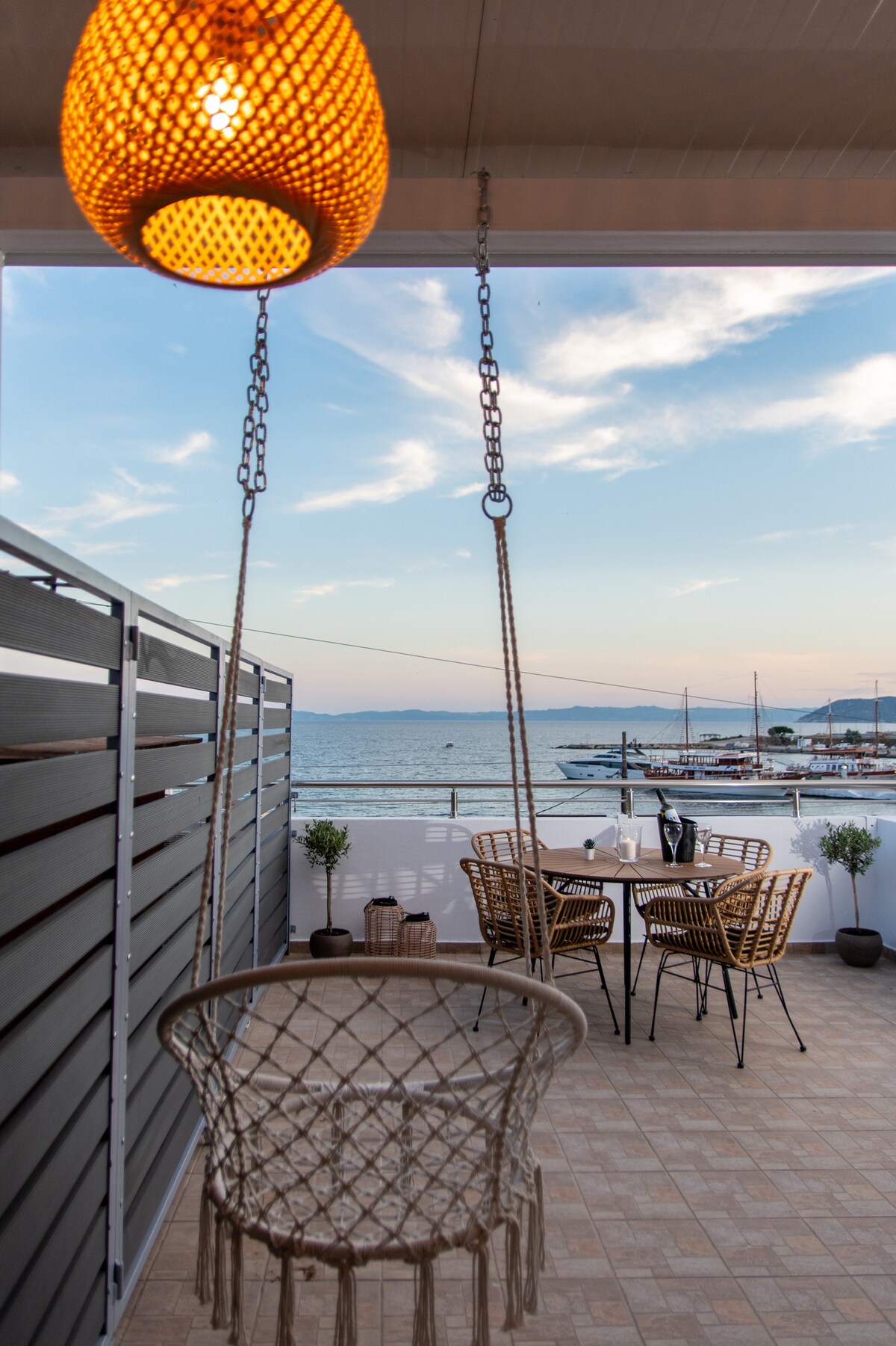 Élégant, confortable et exceptionnellement agréable sur le plan esthétique, notre maisonnette située en haut de l'immeuble Alterra Vita Apartments à Neos Maramaras offre une vue imprenable sur le golfe de Toroneos en plus des normes élevées d'un appartement moderne. Idéal pour 2 couples ou une famille qui veut profiter pleinement de leurs vacances. Entièrement rénovée, cette maison de 80 m ² dispose de 2 chambres séparées, 2 salons, 2 balcons avec vue panoramique et 2 salles de bains rénovées avec douches à mousson – une à chaque étage.