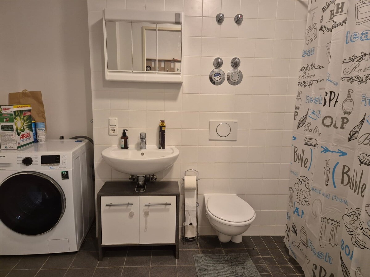 Ce logement offre le mélange parfait de confort et d'un emplacement idéal. L'appartement mansardé est situé dans une maison familiale bien entretenue et a une atmosphère chaleureuse. Que vous soyez en déplacement professionnel, que vous visitiez un salon ou que vous souhaitiez simplement explorer Munich, l'emplacement est super pratique. En voiture ou en transports en commun, vous pouvez facilement vous rendre au centre-ville, à la foire ou à l'aéroport. Et après une longue journée, tu peux simplement te déconnecter et te détendre ici.