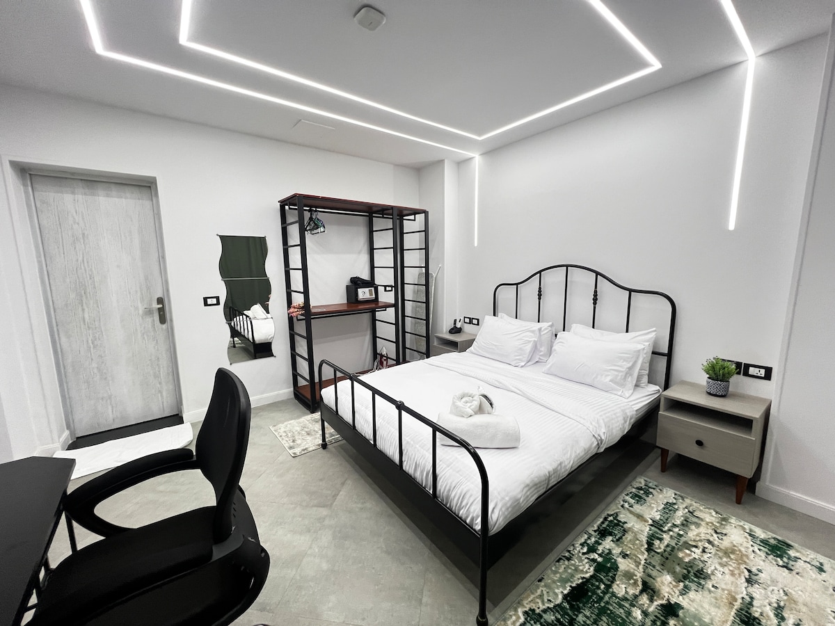 A suite featuring one bedroom with a queen bed, one bathroom with bath tub ,a living room, a private terrace, and a kitchenette — ideal for long-term stays. The hotel offers daily breakfast and housekeeping services.