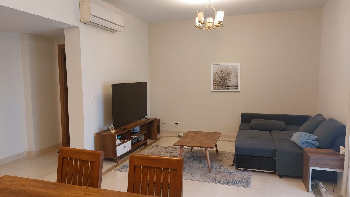 Appartement de deux chambres, dont une chambre principale, avec une vue dégagée et une belle vue sur le jardin. L'appartement est fini et meublé dans un style moderne, offrant confort et élégance. Elle comprend 3 salles de bains, une cuisine entièrement équipée, un espace de réception spacieux et un balcon donnant sur le jardin. Idéal pour un séjour de détente dans un environnement calme et bien entretenu.