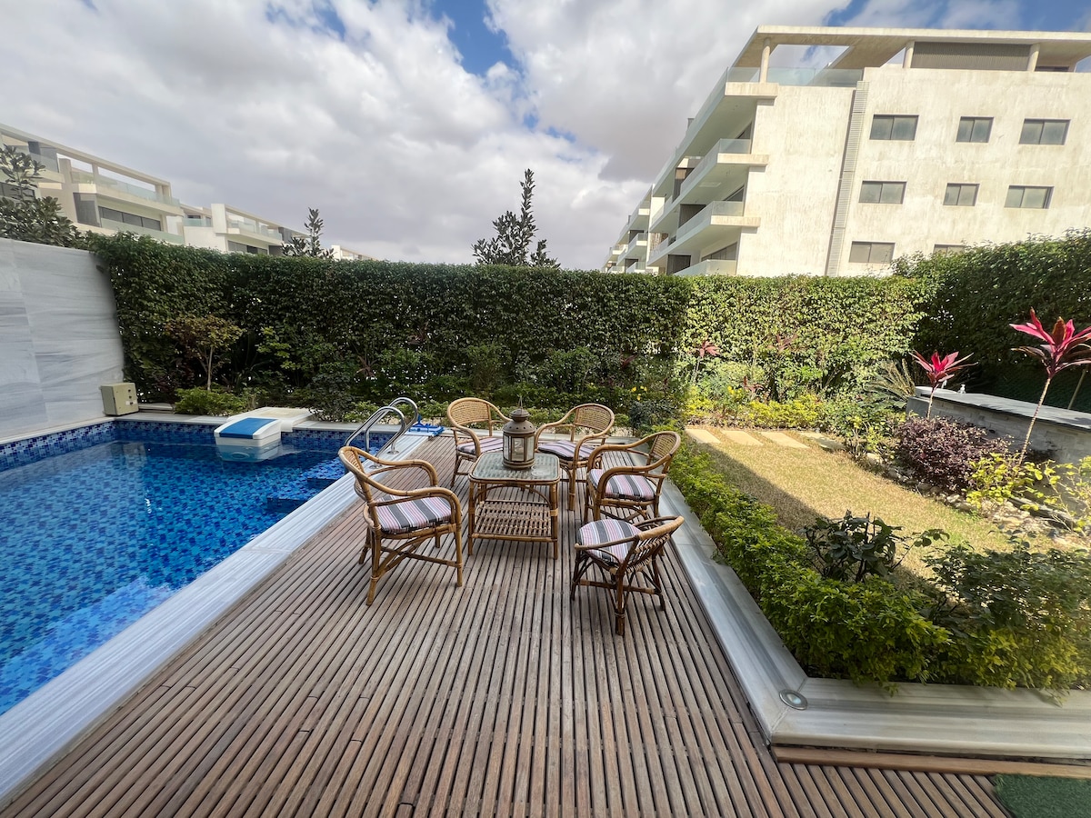 Bienvenue chez vous loin de chez vous ! Cette maison moderne et sereine est conçue pour le confort et la détente. Sortez et profitez de la piscine rafraîchissante. Vous trouverez une cuisine entièrement équipée avec tout ce dont vous avez besoin pour cuisiner vos repas préférés. La maison est située au centre du Nouveau Caire, avec des supermarchés, des cinémas et de nombreuses options de divertissement à proximité. Que vous soyez ici pour affaires, pour le plaisir ou pour les deux, ce logement moderne et confortable est le point de départ idéal pour votre séjour. Vous allez ❤️ l'adorer.