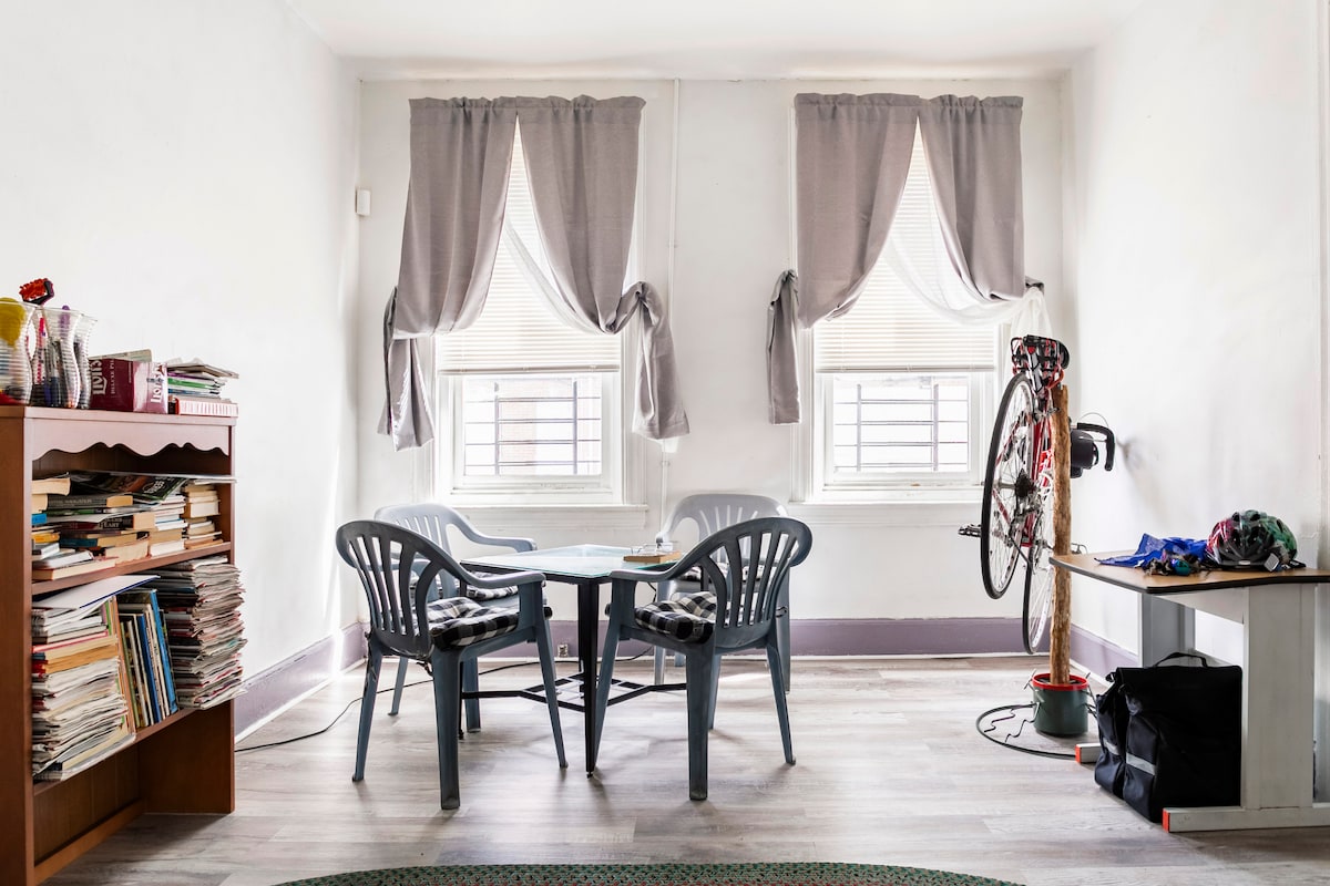Cette maison de ville de 2 chambres et 1,5 salle de bain est une œuvre d'art dans sa peinture, son mobilier et son décor. C'était autrefois ma maison, mais elle est maintenant aménagée pour être une location courte durée dédiée sur Airbnb. Des lits Tempurpedic extra confortables, un pouf géant Lovsac, une cour privée clôturée, une cuisine complète ne sont que quelques-unes des caractéristiques délicieuses de cette maison. À seulement 2 pâtés de maisons du début de Brandywine Park, et à quelques pâtés de maisons du début du centre-ville, cet endroit est idéalement situé pour un séjour à domicile au centre-ville.
