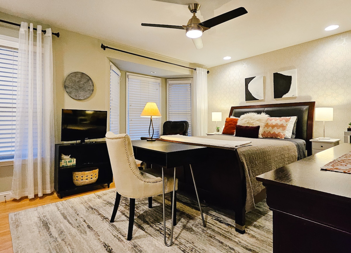 Évadez-vous dans notre charmante maison de ville entièrement rénovée, où l'allure historique rencontre le confort contemporain. Idéale pour les familles ou les groupes, notre maison dispose d'une literie somptueuse, d'une connexion Wi-Fi haut débit et d'un parking privé pour quatre personnes. Chaque chambre est équipée de téléviseurs intelligents Roku, assurant le divertissement après avoir exploré les attractions de la ville. Situé à Wilmington, à quelques minutes des quartiers animés du centre-ville et de l'hôtel historique DuPont, notre emplacement à Mid-town Brandywine offre à la fois tranquillité et commodité.
