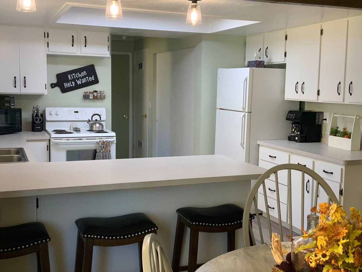 Cette suite confortable de 1 chambre et 1 salle de bain est attenante à notre maison familiale, mais dispose d'une entrée verrouillée séparée et offre une intimité totale. Notre quartier calme de la campagne est situé dans les belles terres agricoles de l'Idaho. Profitez de la confiture de notre jardin et d'une promenade jusqu'au lac du quartier. Nous sommes à 15 min de BYU-Idaho, 1,5 heure de Yellowstone NP, 1,5 heure de Jackson et Grand Teton NP, 15 min des dunes de sable et environ 1 heure de la station de ski Grand Targhee.