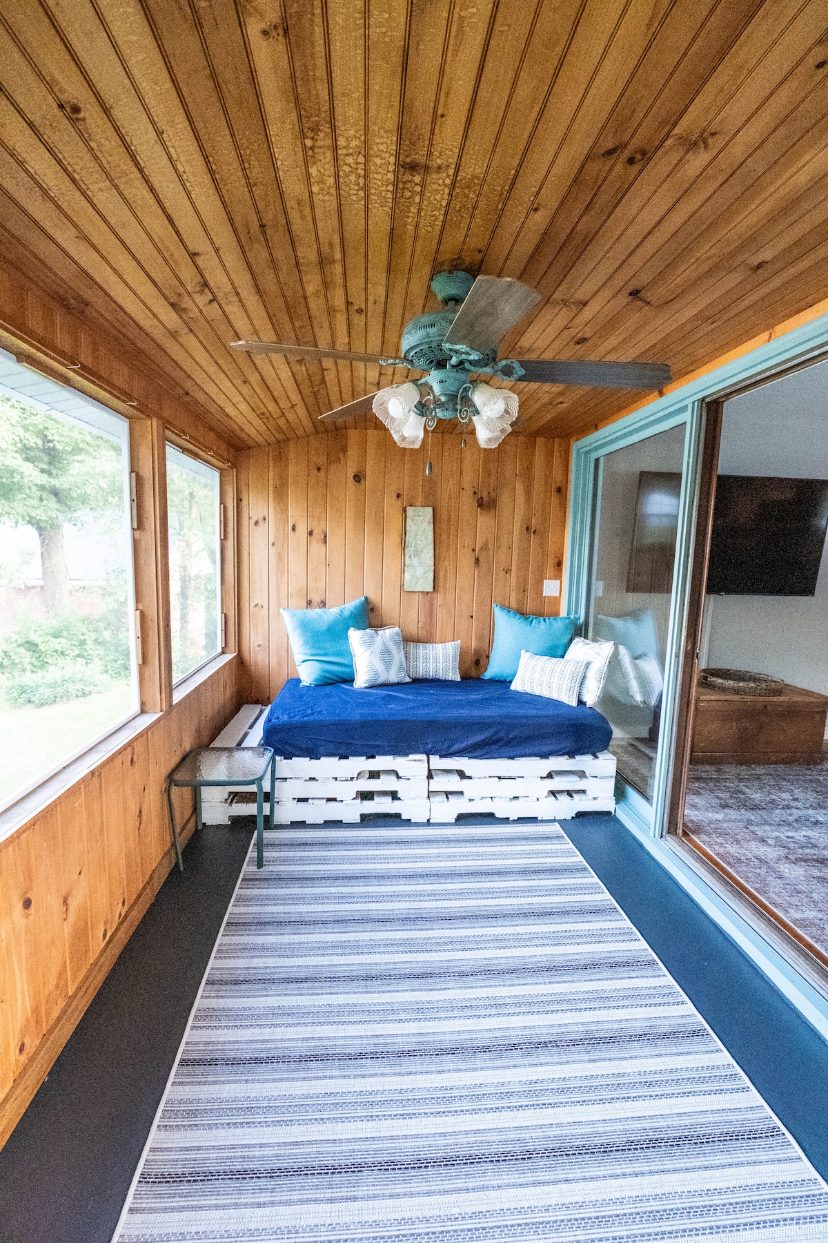 Cabane en bord de lac | Boat Dock-Fireplace : vue sur le coucher du soleil