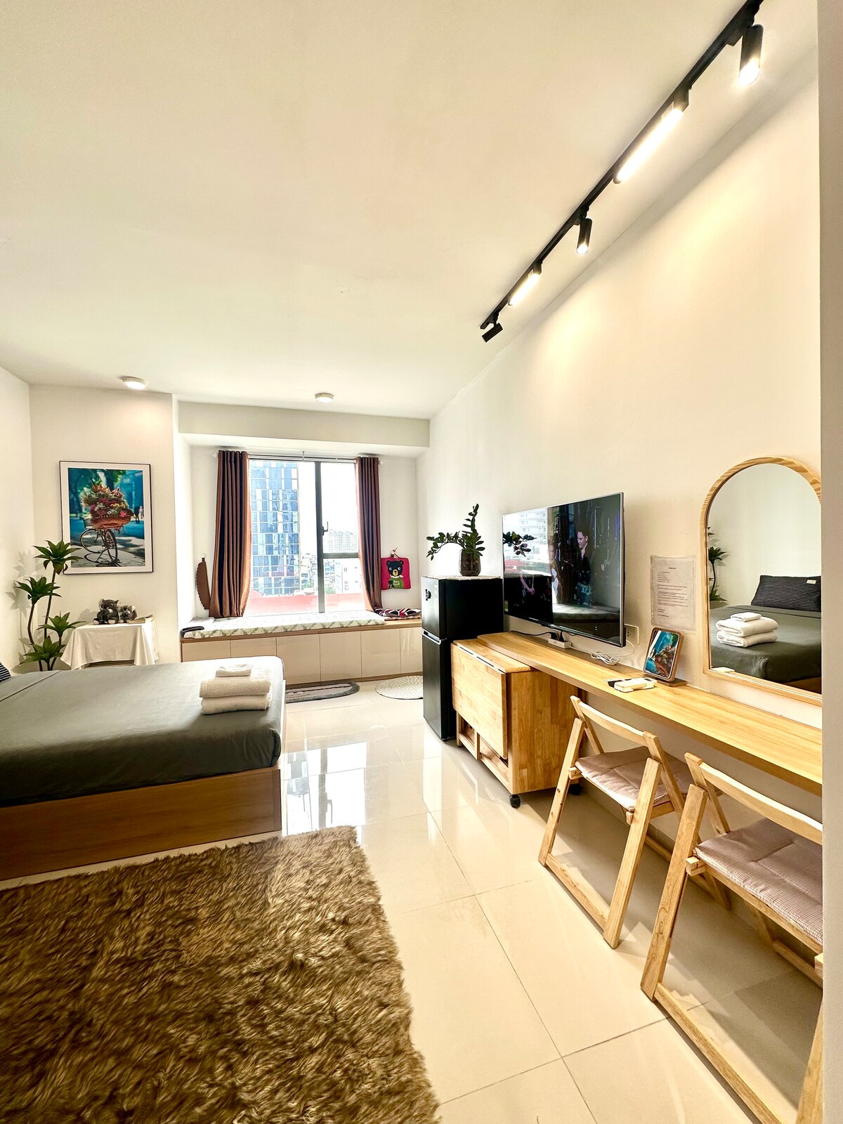 Established in 2023, We offer High Quality Short and Long Let Serviced Apartments located right on a busy street with famous cafes, restaurants, Circle K and convenient stores near by and just a few minutes walk to Bui Vien walking street, Tao Dan Park. Cost-effective compared to hotels, we provide 1 BR serviced apartments with privacy, modern style, kitchen, balcony, soundproof door & windows, desk space to work, rooftop garden, elevator, regular cleaning and the comforts of a “Home-from-Home”.