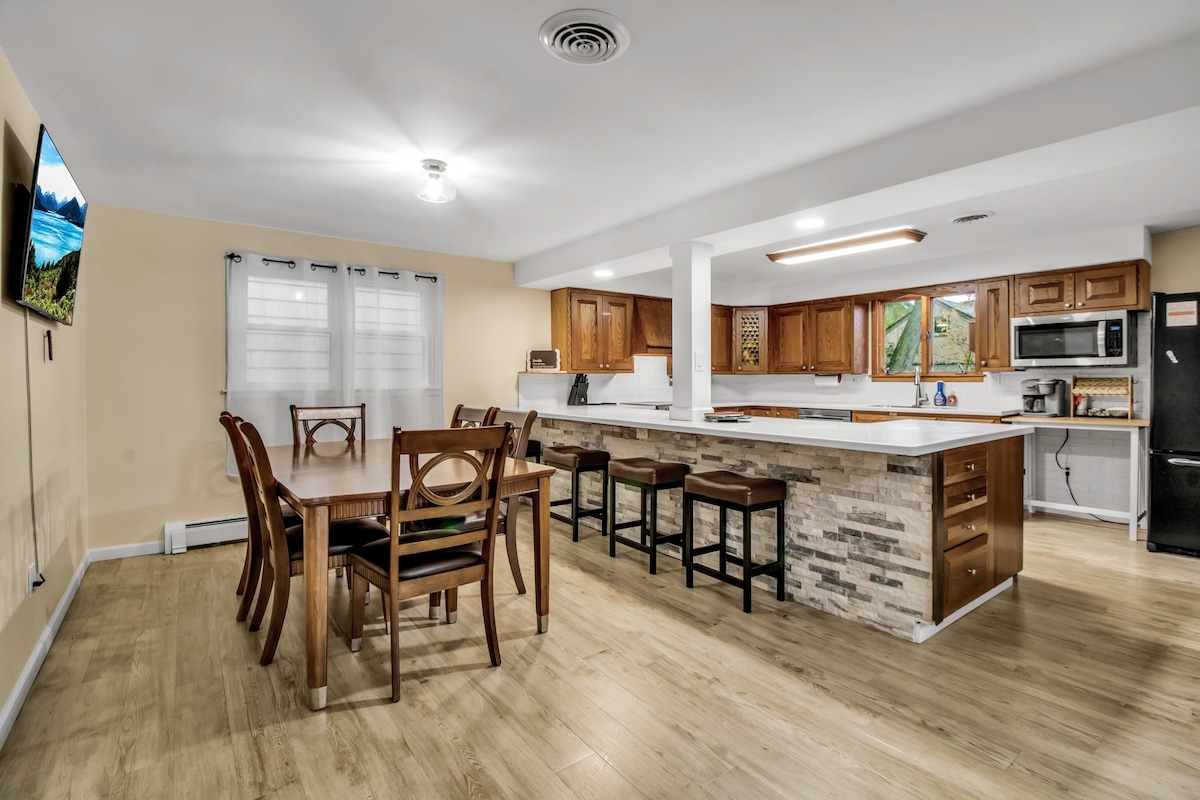 🏡 Logement à aire ouverte tout équipé et récemment rénové! 🌊 Idéal pour les familles nombreuses ou les groupes qui explorent la région de Niagara, avec 5 chambres : 3 lits queen size, 1 lit double et 2 lits simples, ainsi que 2 canapés. 🛌 Profitez de 3 salles de bain complètes, 2 salles de séjour, 2 salles à manger et 2 cuisines, parfaites pour préparer les repas. 🧘 Profitez du feu et de l'eau : cour arrière avec une pergola autour du foyer pour 12 personnes, 2 barbecues et un spa pour 4 personnes ! 🌟 Votre aventure à Niagara commence ici ! 💯 Excellente hospitalité