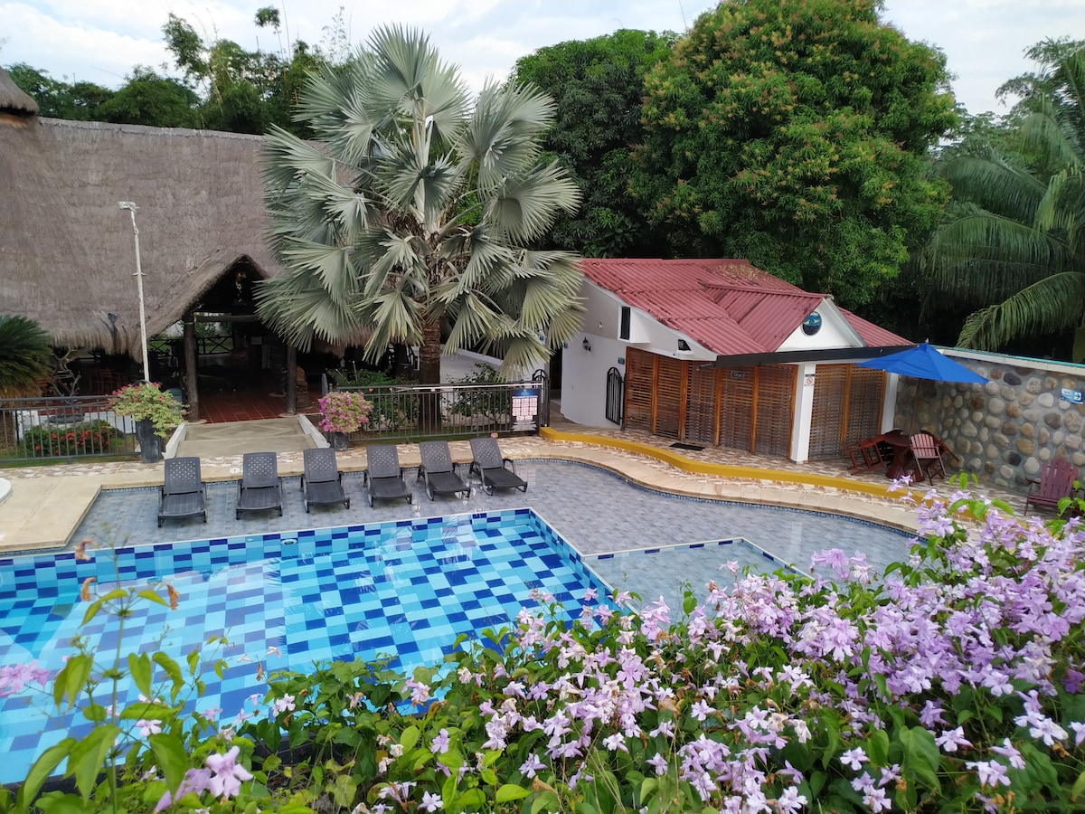 Cabane Junior dans un bel Hôtel de type Campestre avec des installations complètes pour les adultes, les enfants, les familles, les couples et les promenades. Situé à l'intérieur de Melgar seulement 5 minutes à pied du parc central ou de la zone rose.