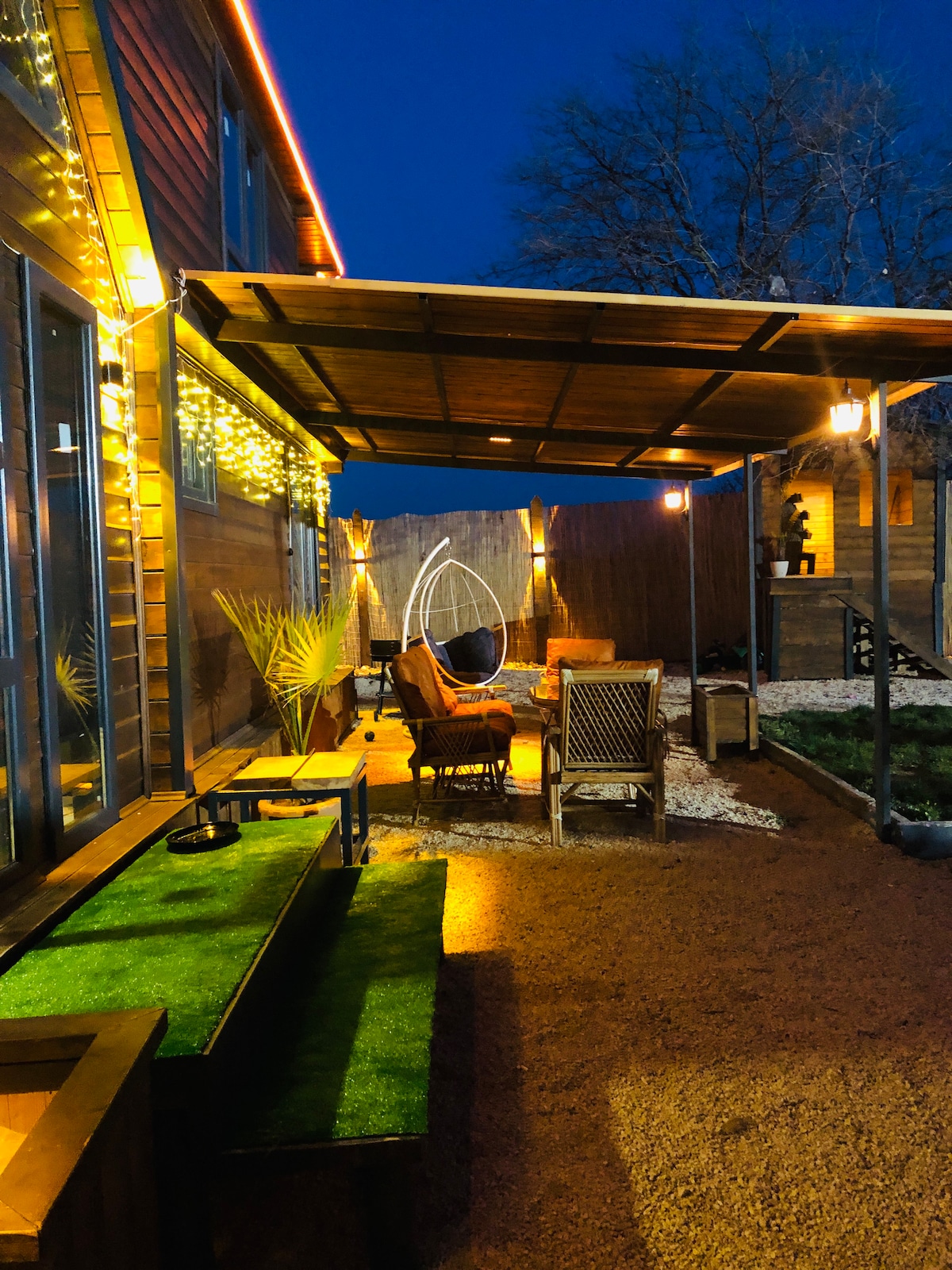 Bursa merkezde doğa ile iç içe huzur içinde zaman geçireceğiniz özel yapım loft katlı tiny house'umuz ile hizmetinizdeyiz. Ambiyans ışıklandırmalarımız ile büyüleneceğiniz eşsiz saatler sizi bekliyor. 400 m2 DIŞ DÜNYAYA İZOLE EDİLMİŞ BAHÇE 2 TAKIM BAHÇE MOBİLYASI(10 kişilik) 6 MT X 2.5 MT VARENDA BARBEKÜ ATEŞ ÇUKURU YATAK ODASI TV BOX 7/24 SICAK SU KLİMA ŞÖMİNE