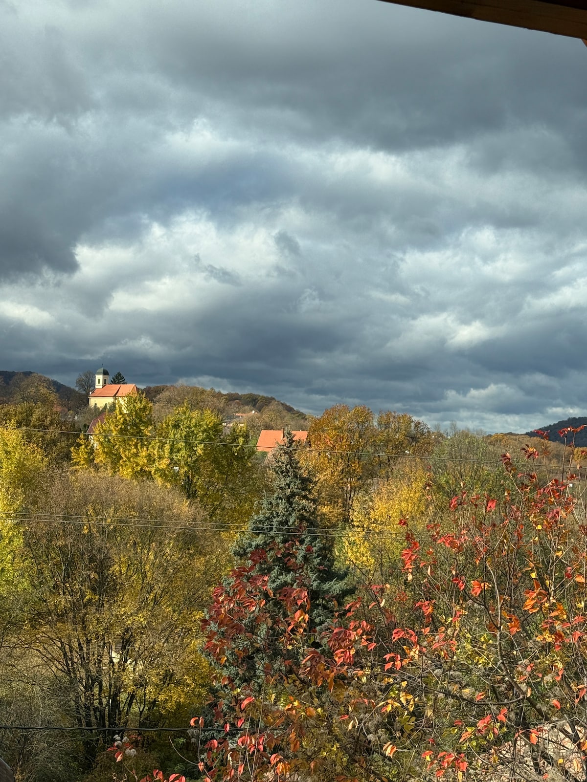 Magnifique panorama, air frais et tranquillité. Dans cet environnement a été construit la maison, dont le niveau supérieur est l'appartement brun. Il dispose d'une terrasse privée de 30 m ² d'où vous pourrez admirer le Danube et le château de Visegrad. Vous adorerez quand vous regarderez les navires et les lumières de Visegrad la nuit avec un verre de vin à la main. L'appartement est situé sur deux étages, avec une immense terrasse au fond, un salon, une cuisine et une salle de bain, et deux chambres au dernier étage.