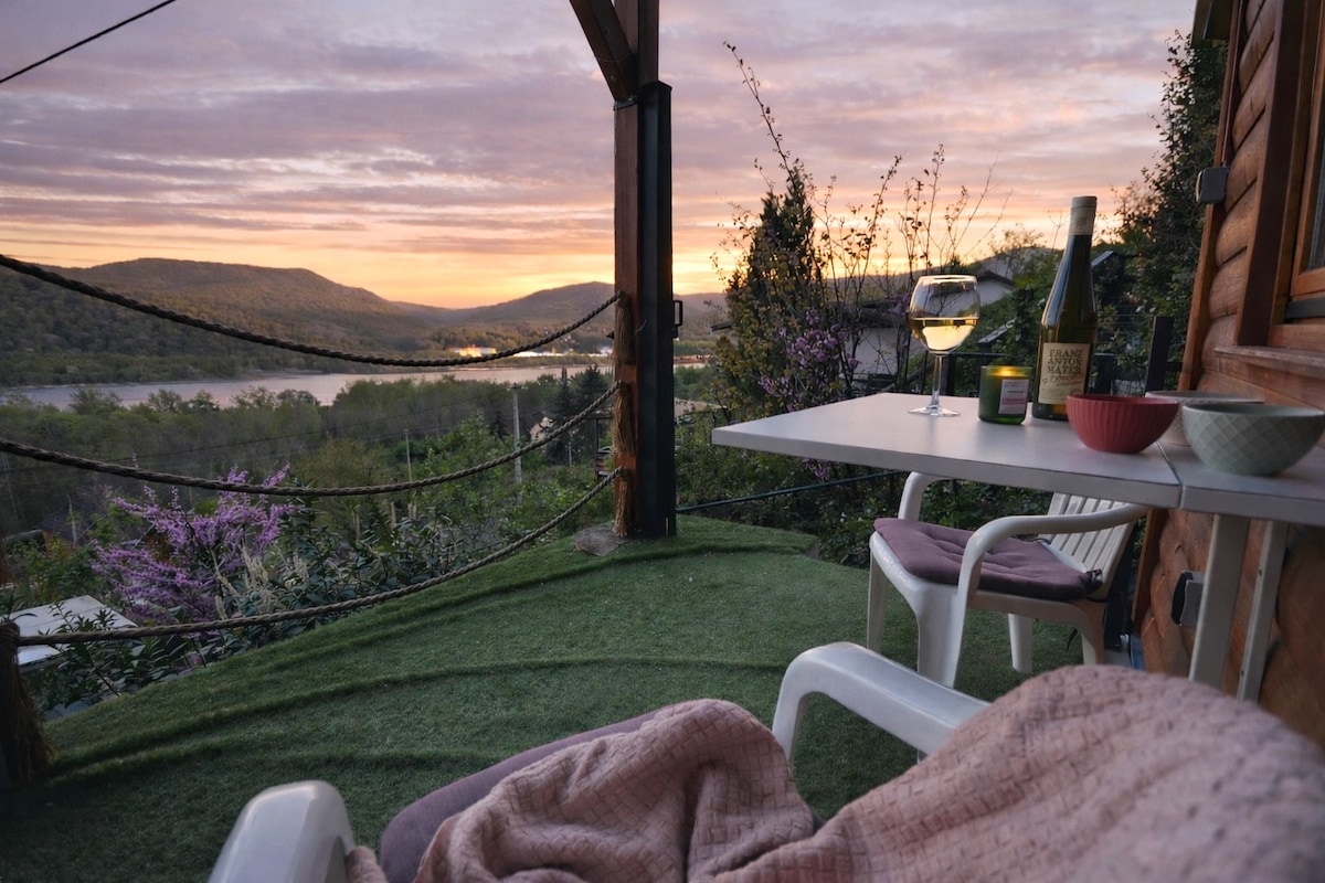 Détendez-vous dans ce logement unique et paisible au sommet d'une colline à Szentendre. Profitez du panorama et de l'air frais. Partez en randonnée dans les montagnes de Pilis, explorez Szentendre ou même Budapest. Le centre de Szentendre est à 10 minutes en voiture, et Budapest est à seulement 20 minutes. La cabane en bois est équipée de la climatisation pour le refroidissement et le chauffage sur les deux niveaux, assurant ainsi une température idéale. La maison est accessible en transports en commun, mais il peut être difficile de transporter beaucoup de bagages.