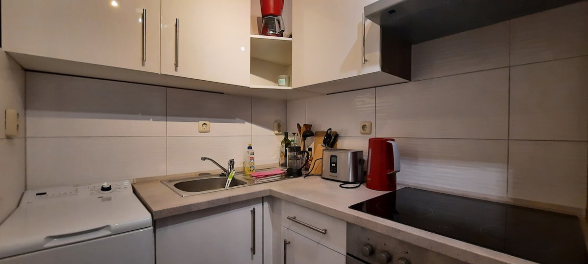Bienvenue à la maison dans cet appartement récemment rénové ! Profitez du séjour avec cuisine, grand lit et salle de bain moderne ! → Parfait pour 1-5 personnes : lit boxspring (1,40 m) + canapé-lit (1,40 m) + lit de jour (1,60 m) → Parfait pour les voyages d'affaires → Salle de bain privée avec douche et lave linge → Balcon privé → Poste de travail avec coin salon pour la nourriture ou le télétravail → Smart TV incluant Fire TV Stick et wifi gratuit → grand parking à 2 min. à pied