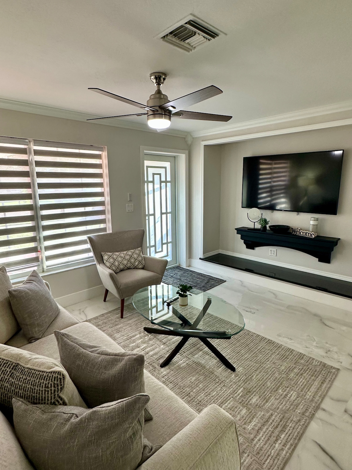 Bienvenue à The Royal Escape, un studio confortable et élégant avec de riches accents bleu roi et un décor moderne. Parfait pour la détente ou le travail, profitez d'un lit king-size moelleux, d'une connexion Wi-Fi rapide et d'une kitchenette bien équipée avec un four à micro-ondes et un réfrigérateur. Idéalement situé au cœur de Cape Coral, profitez des restaurants, des magasins et des parcs à proximité. Conçu avec soin pour le confort et le style, The Royal Escape est votre escapade idéale. Réservez votre séjour dès aujourd'hui !