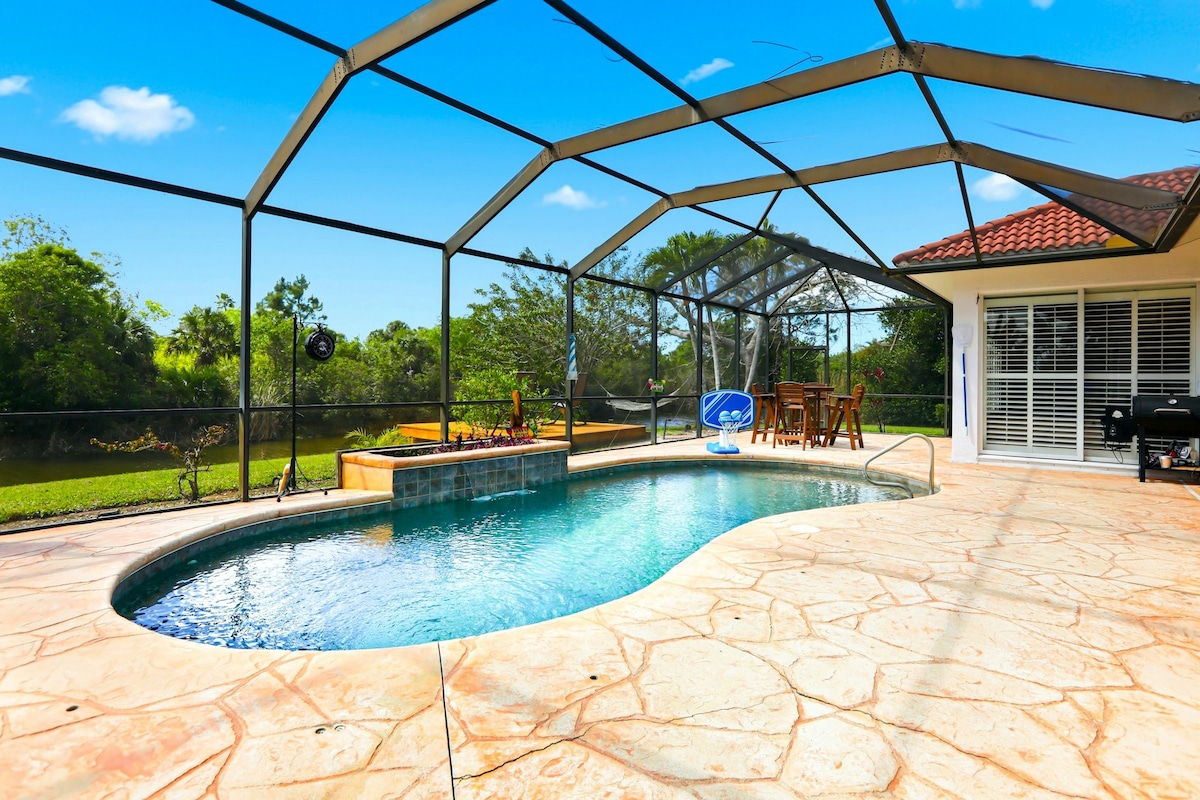 Bienvenue à SALT + LIGHT! Familiale + mise à jour avec de nouveaux carreaux de porcelaine, des appareils en acier inoxydable, des comptoirs en quartz, + un nouveau climatiseur! Localisation A+ : 3m-Downtown 3m-Tin City 4m-Plage Zoo de Naples à 5 m 5m-Jardin botanique 5m-Great Wolf Lodge Points forts : Piscine privée chauffée (sans frais supplémentaires) Véranda couverte avec guirlandes lumineuses Brasero Équipement de plage Entrée sans clé Salle de jeux Fresque murale de plage Douche extérieure Lave-linge/sèche-linge Espace de travail Lits superposés Wi-Fi haute vitesse et téléviseurs intelligents Purificateur d'air de qualité médicale Gym, pickleball et sauna